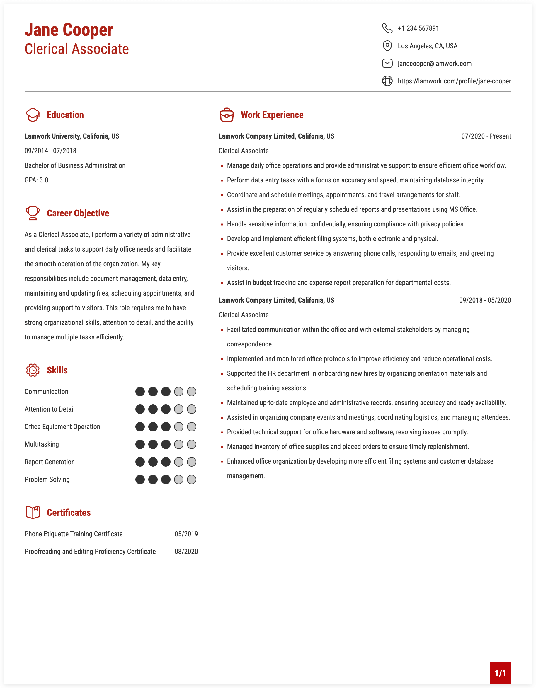 CLERICAL ASSOCIATE RESUME EXAMPLE