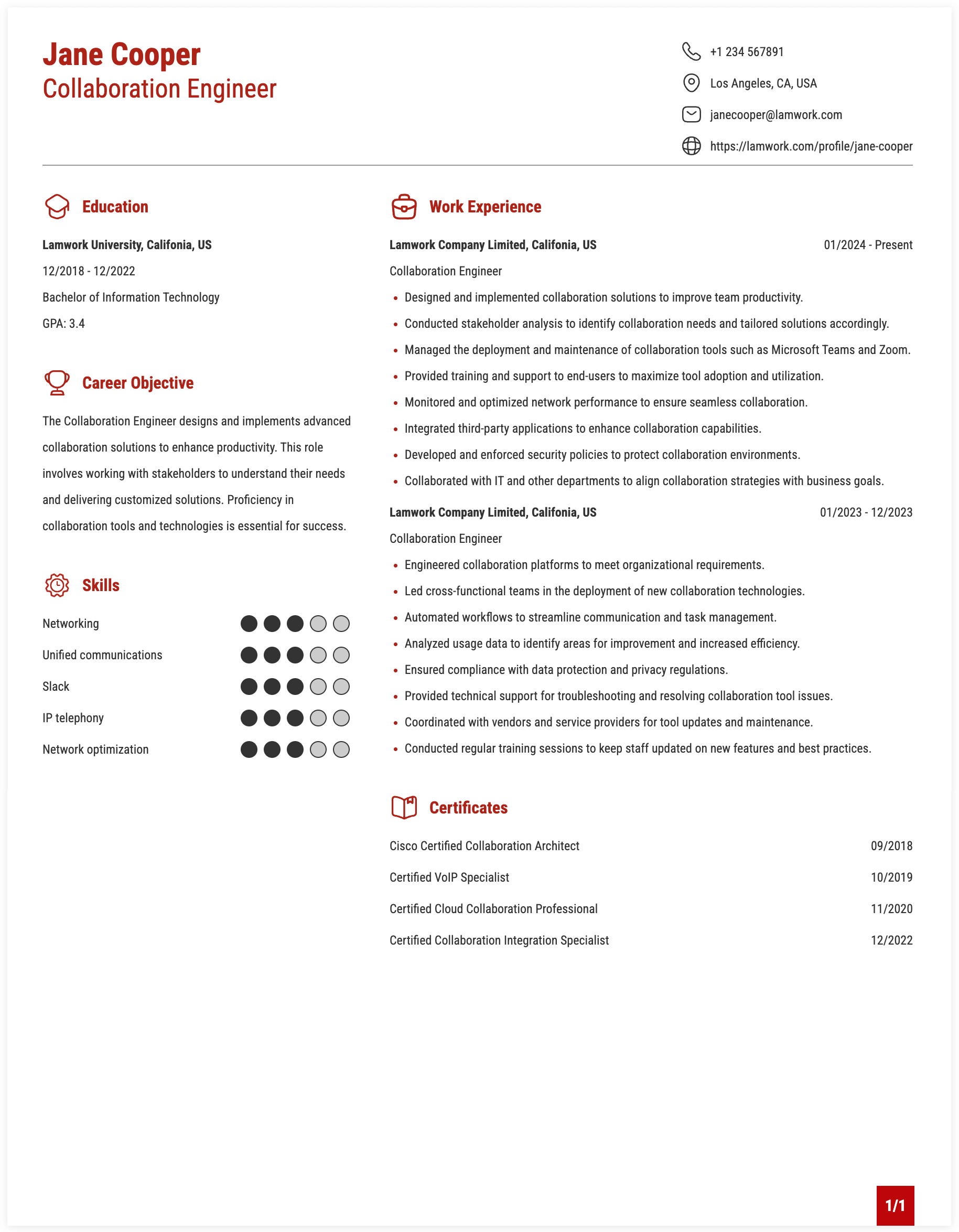 COLLABORATION ENGINEER RESUME EXAMPLE