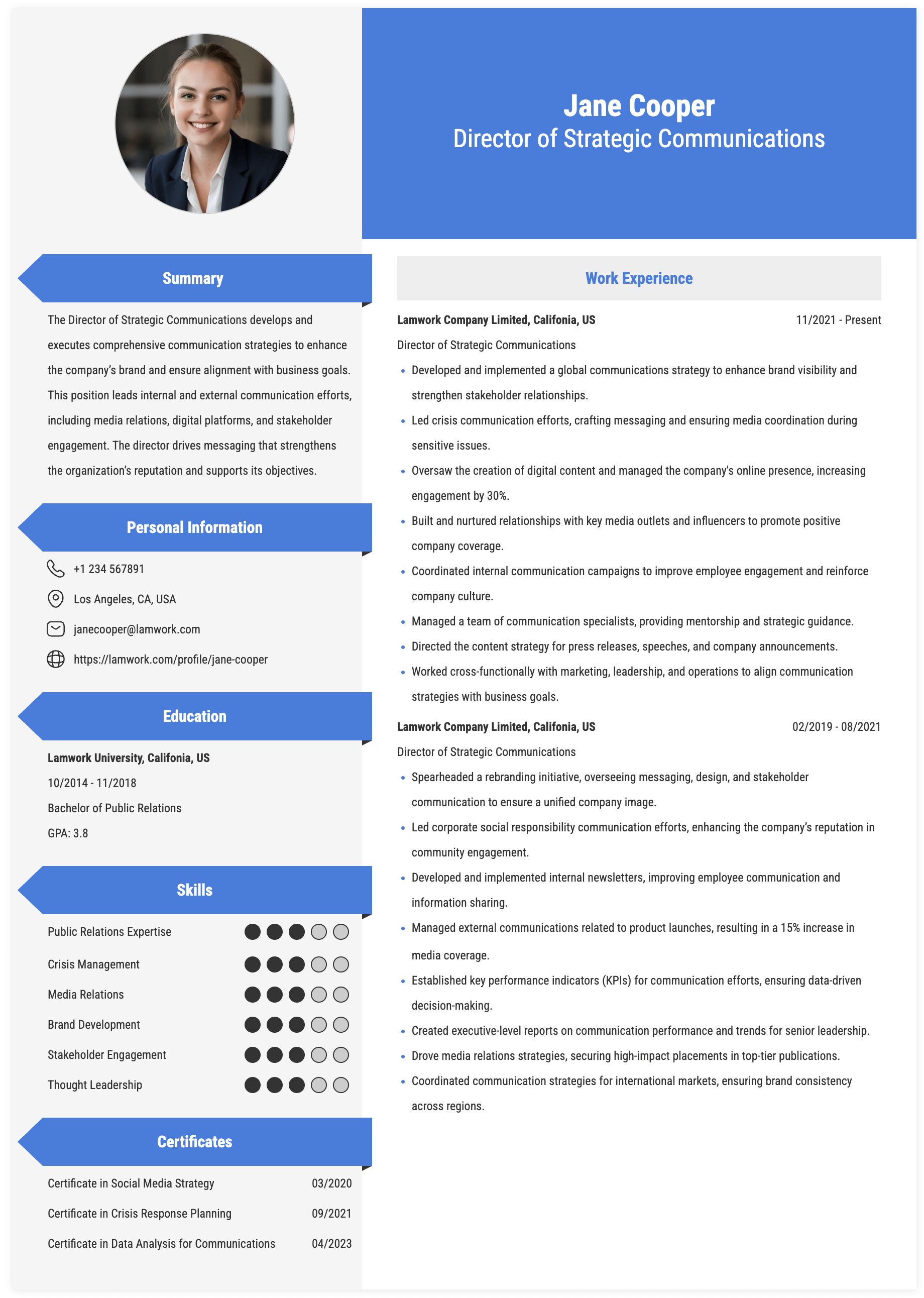 DIRECTOR OF STRATEGIC COMMUNICATIONS RESUME EXAMPLE