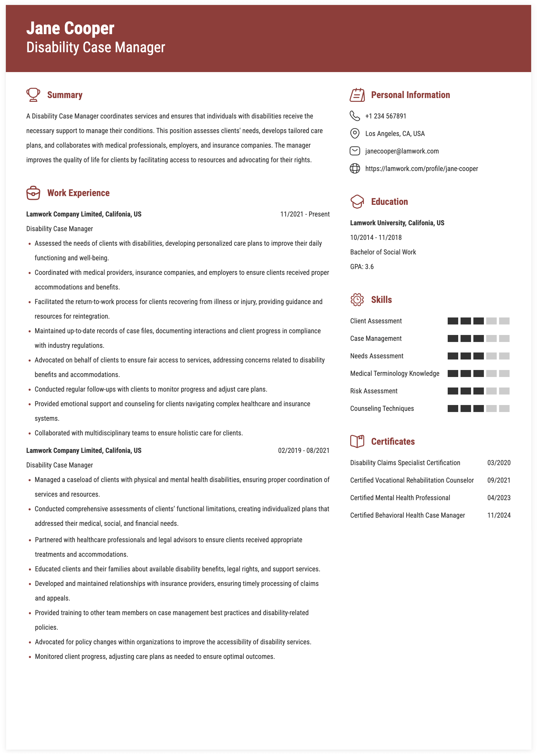 DISABILITY CASE MANAGER RESUME EXAMPLE