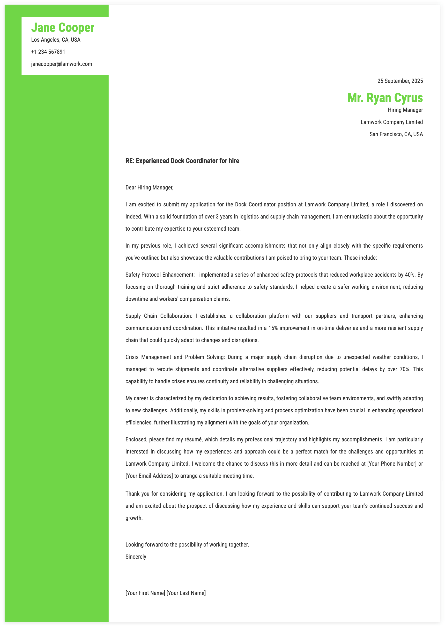 What Are the Qualifications and Requirements for Dock Coordinator in a Cover Letter?