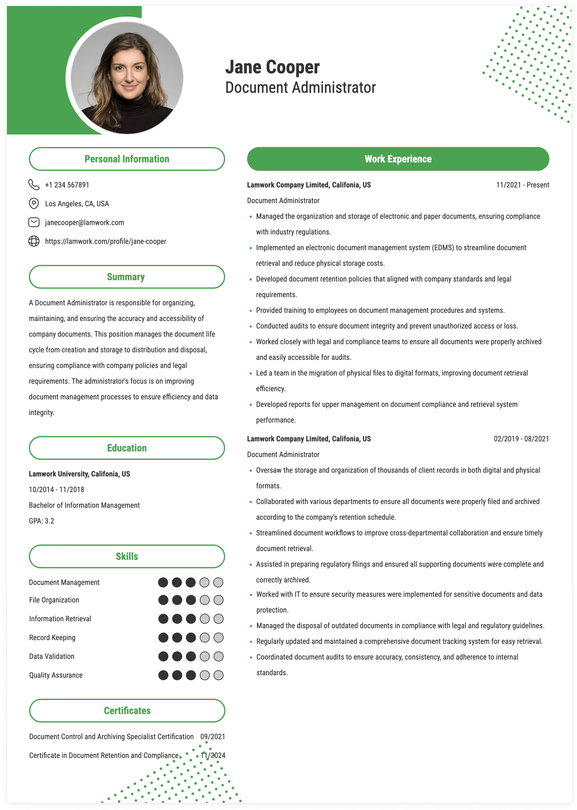 DOCUMENT ADMINISTRATOR RESUME EXAMPLE