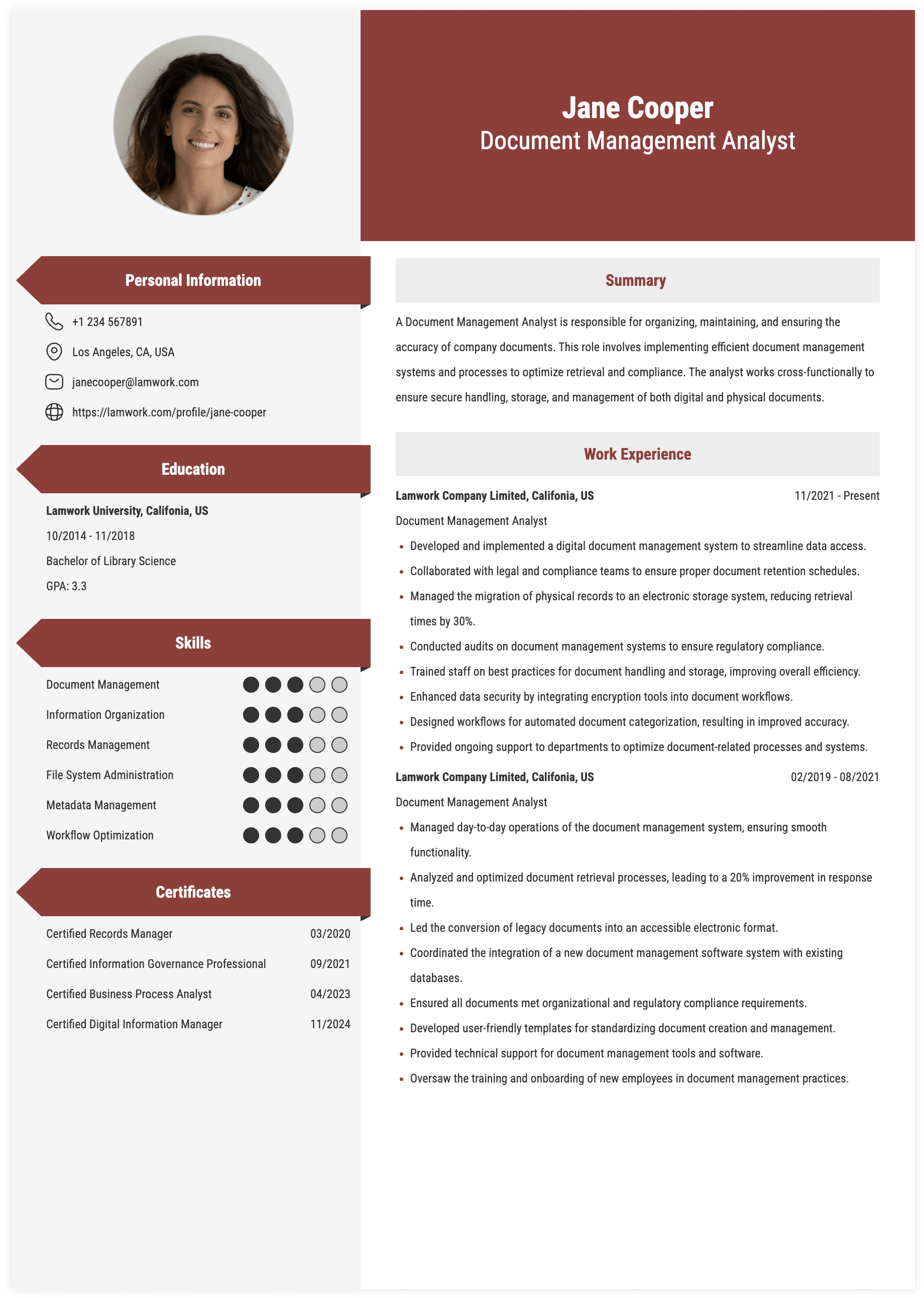 DOCUMENT MANAGEMENT ANALYST RESUME EXAMPLE