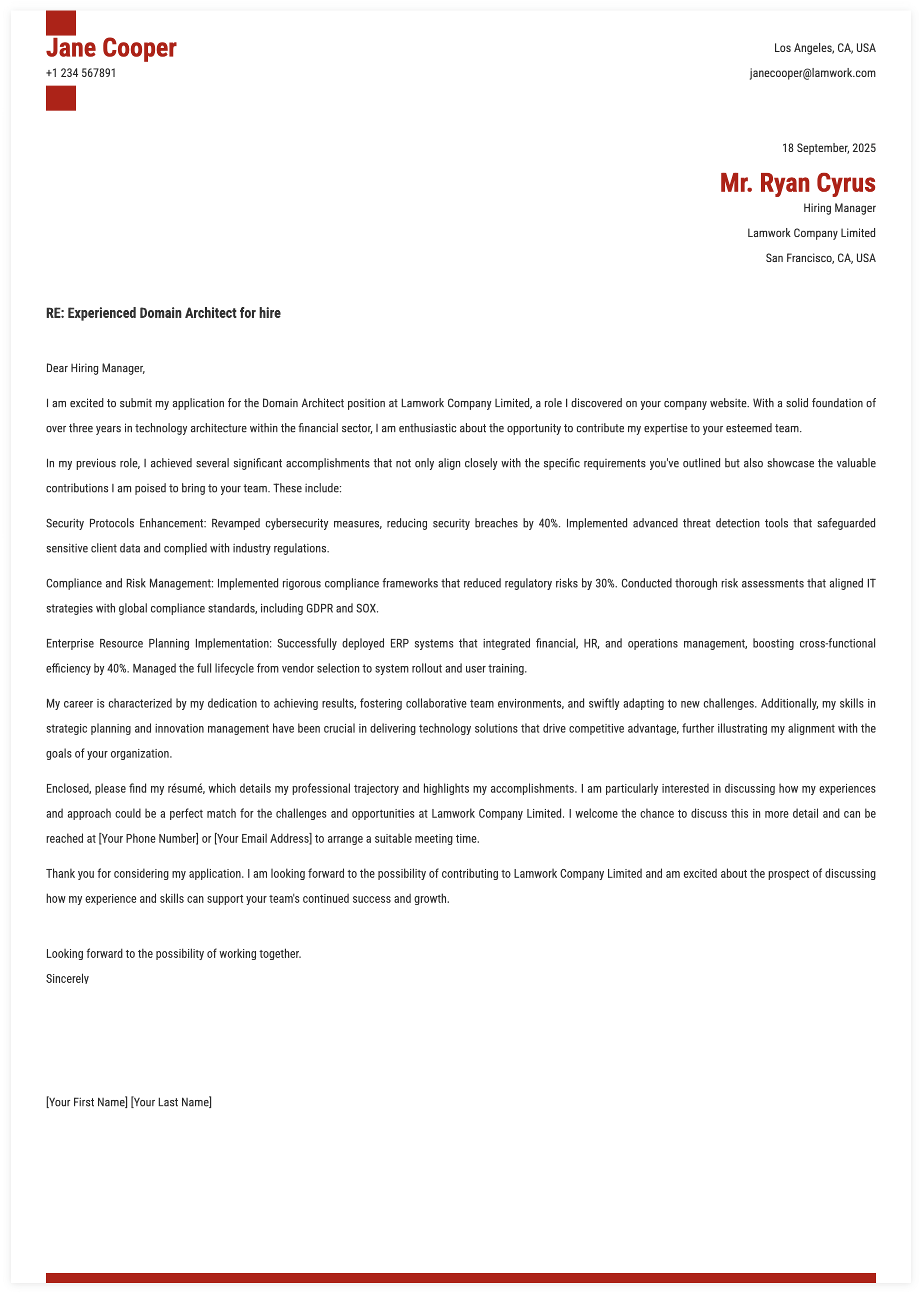 1. Details for Domain Architect Cover Letter