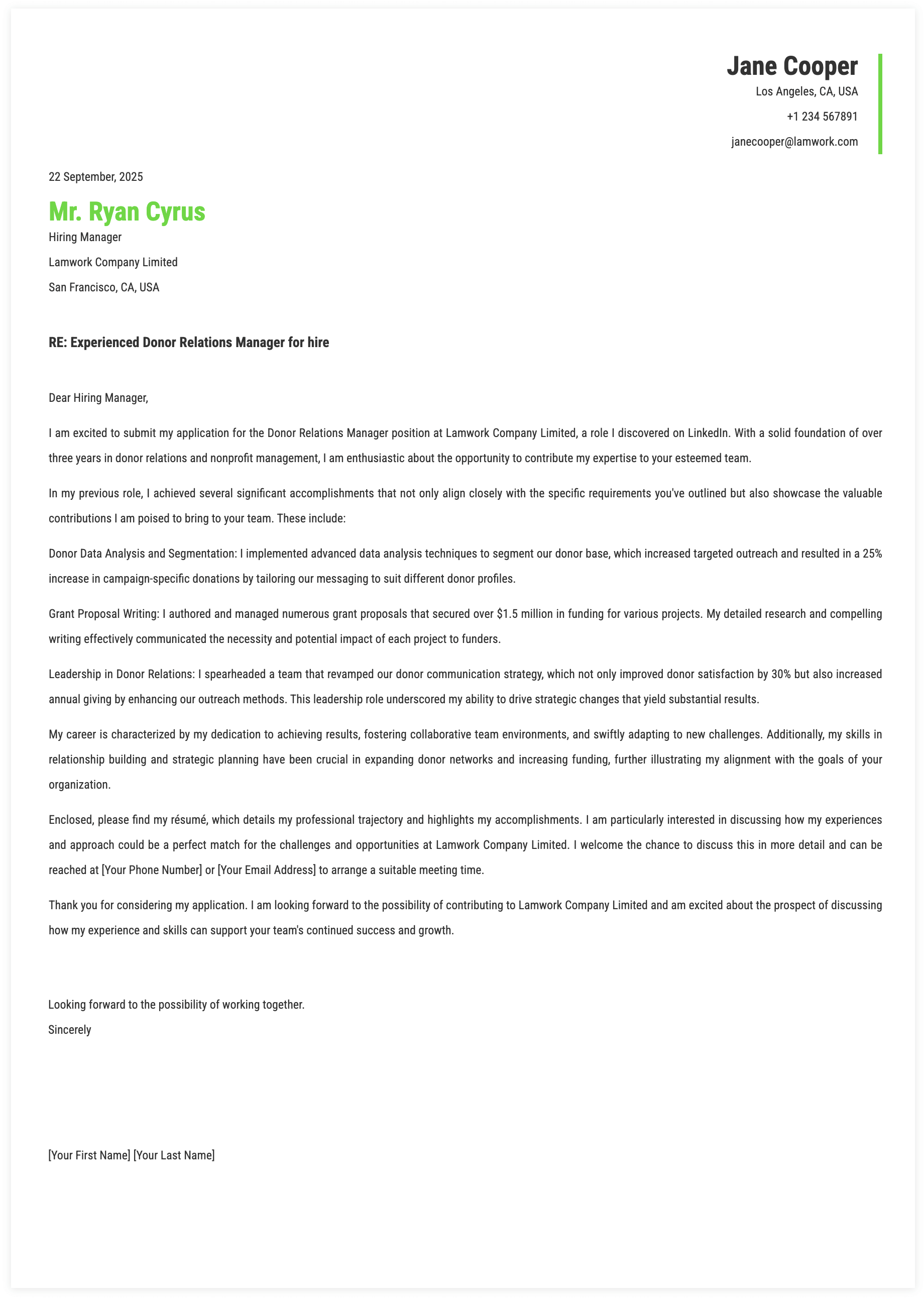 2. Experience and Requirements for Donor Relations Manager Cover Letter