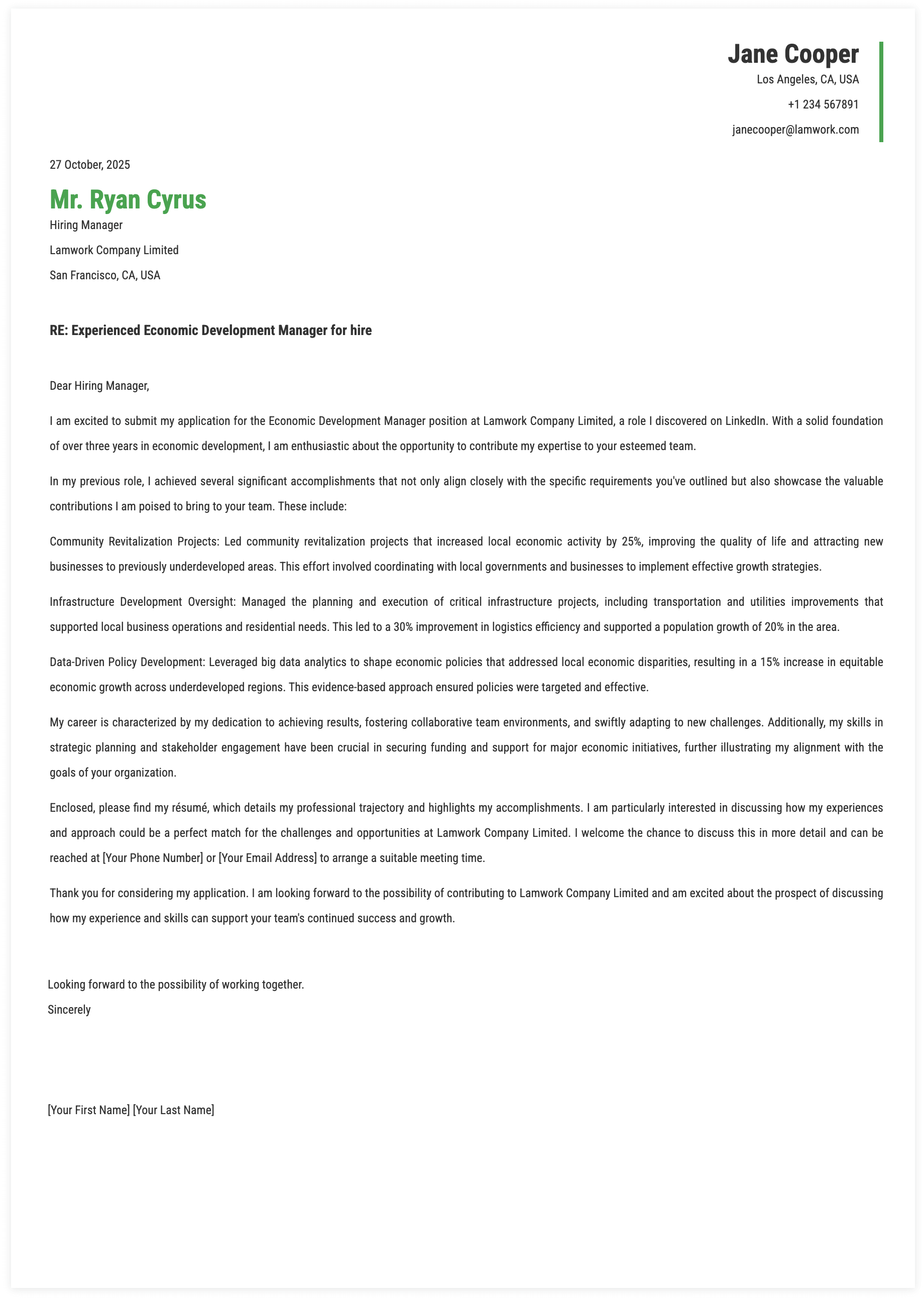 1. Details for Economic Development Manager Cover Letter