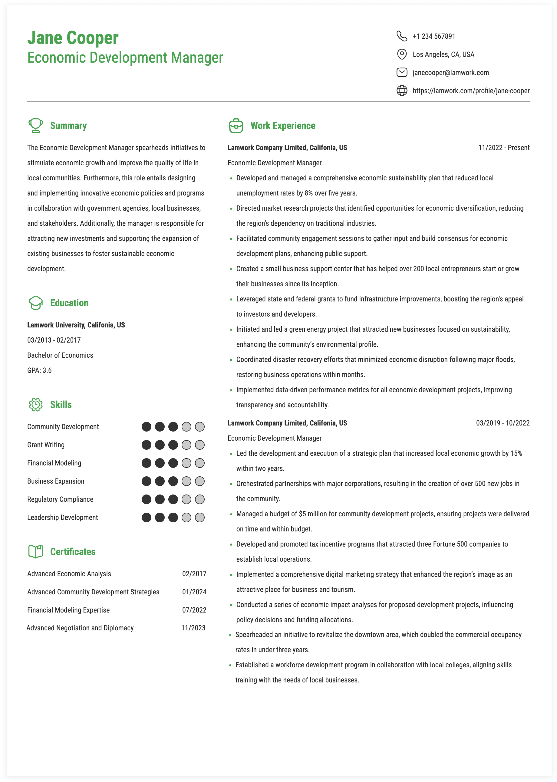 ECONOMIC DEVELOPMENT MANAGER RESUME EXAMPLE