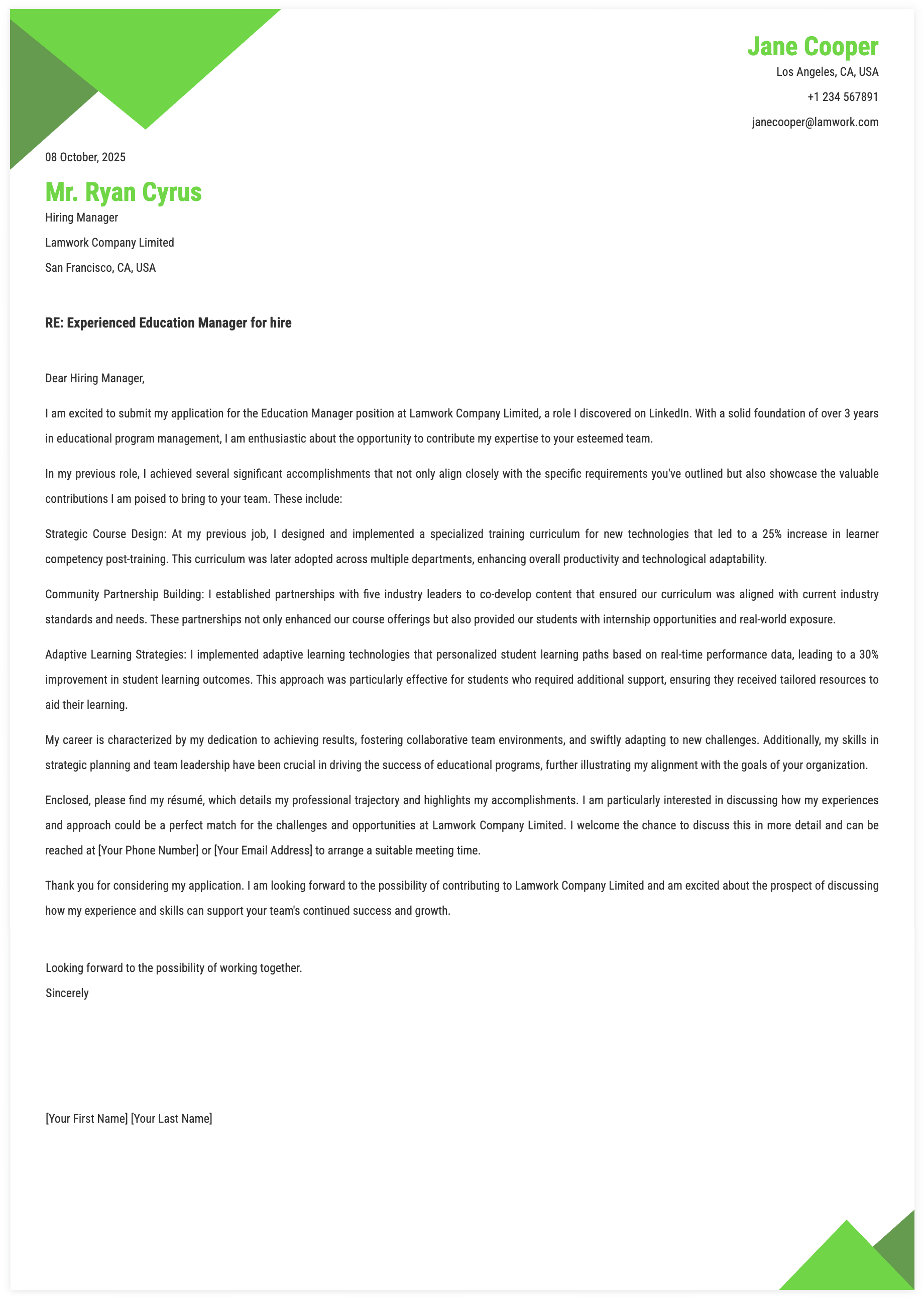 1. Details for Education Manager Cover Letter