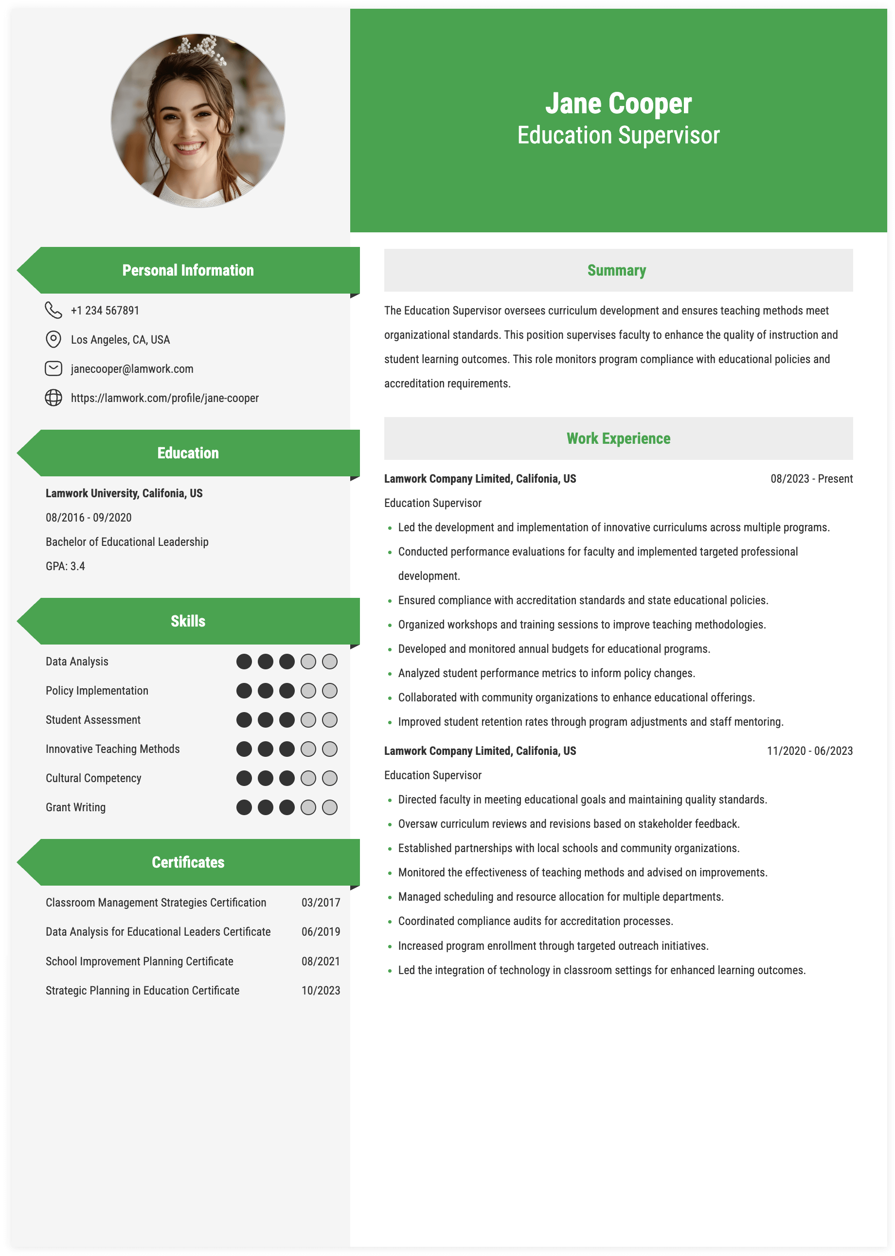 EDUCATION SUPERVISOR RESUME EXAMPLE