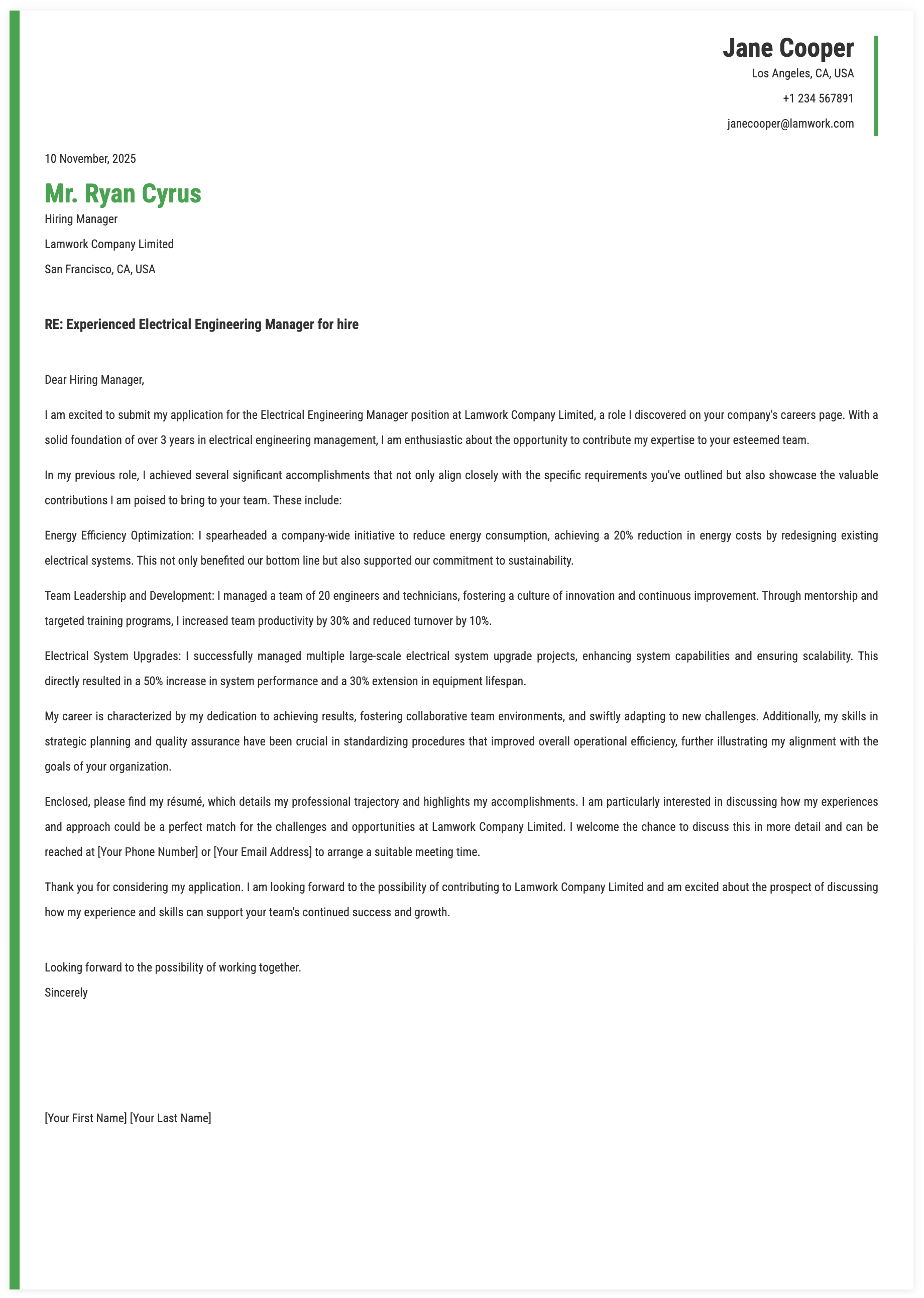 5. Job Description for Electrical Engineering Manager Cover Letter