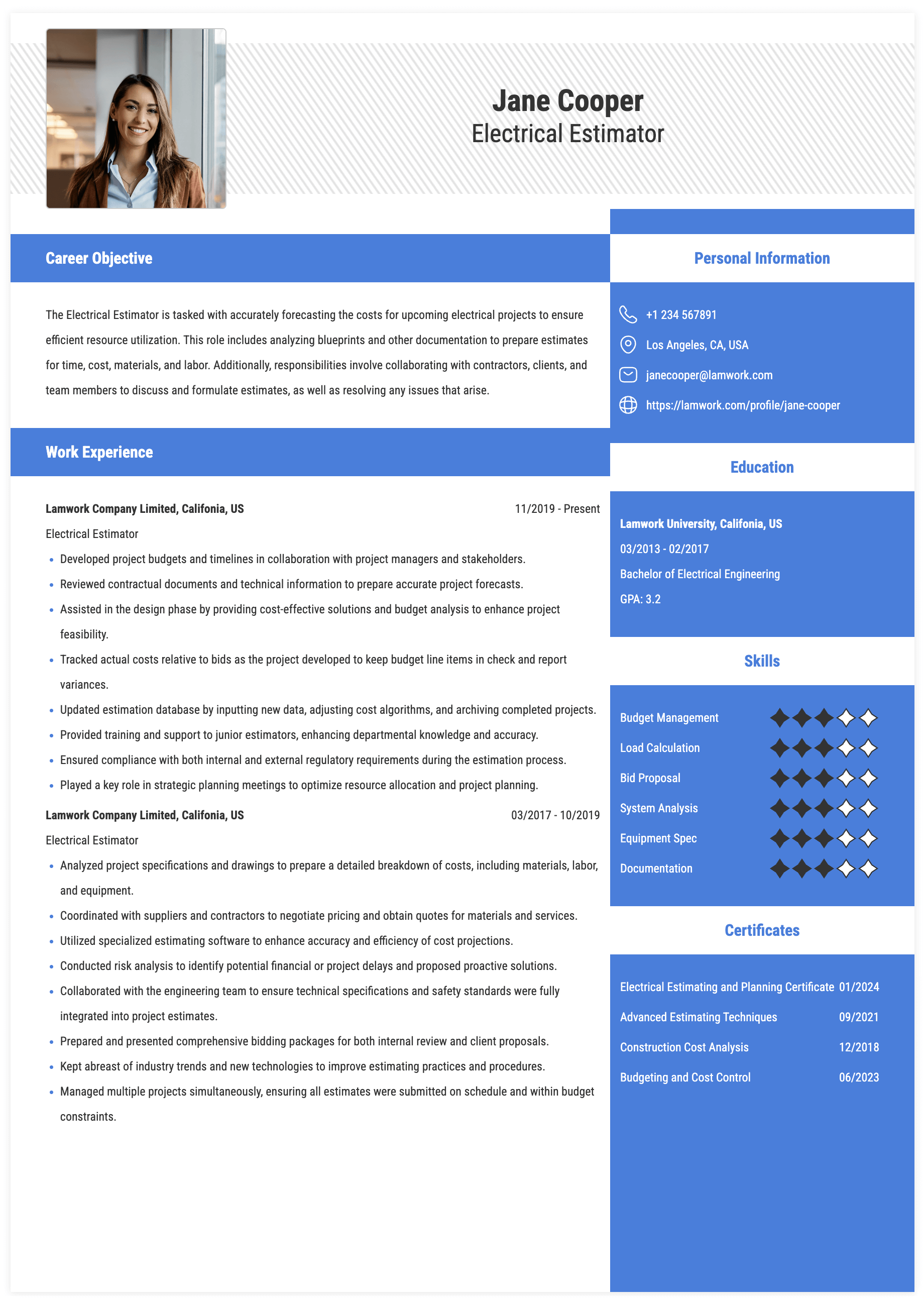 ELECTRICAL ESTIMATOR RESUME EXAMPLE