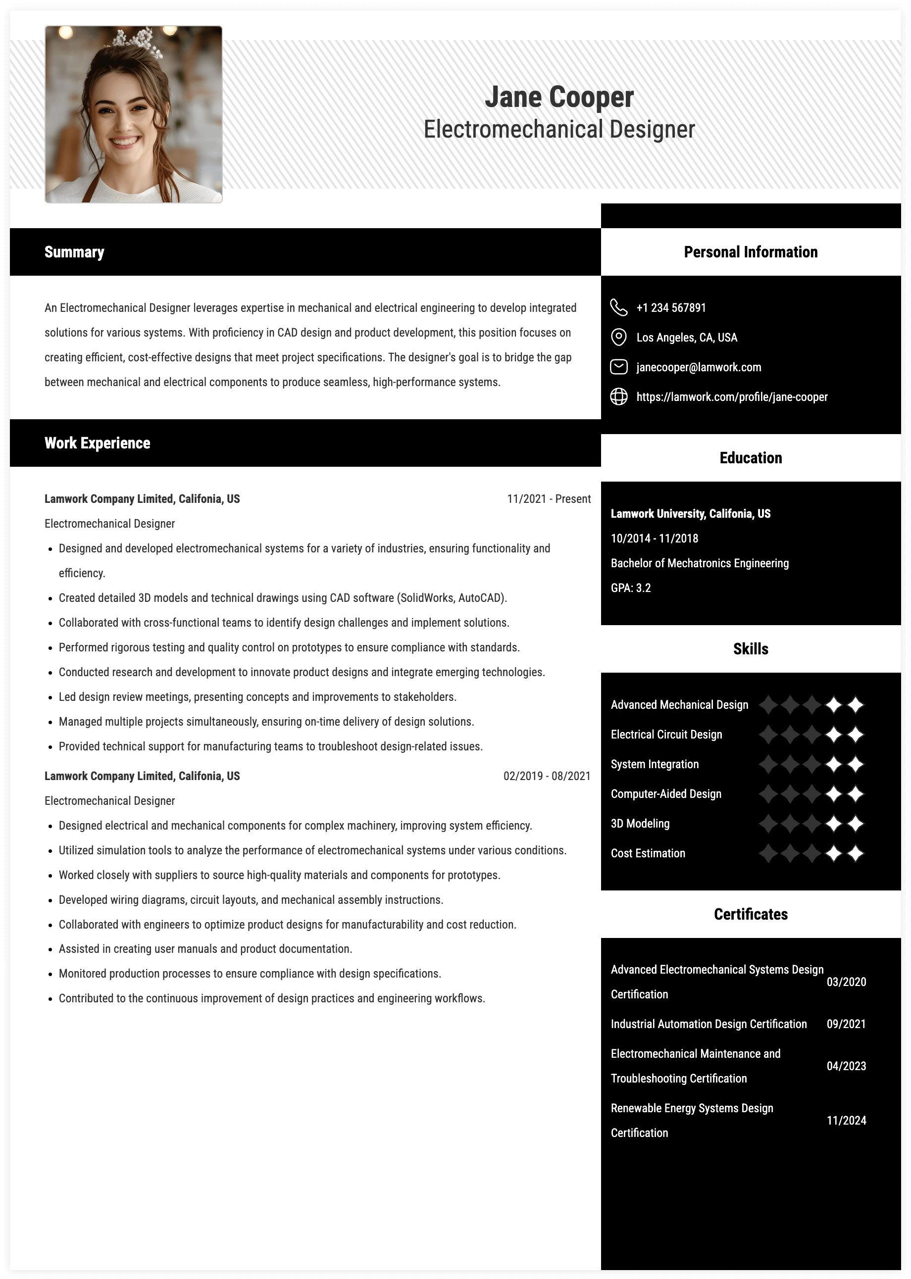 ELECTROMECHANICAL DESIGNER RESUME EXAMPLE