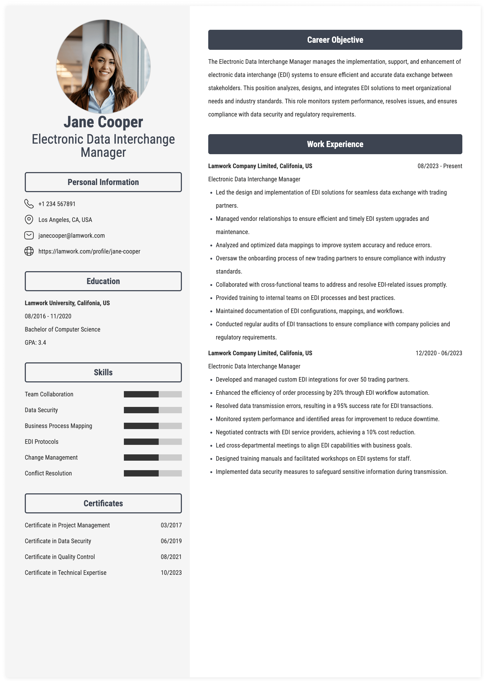 5. Electronic Data Interchange Manager, NovaTech Innovations, Louisville, KY