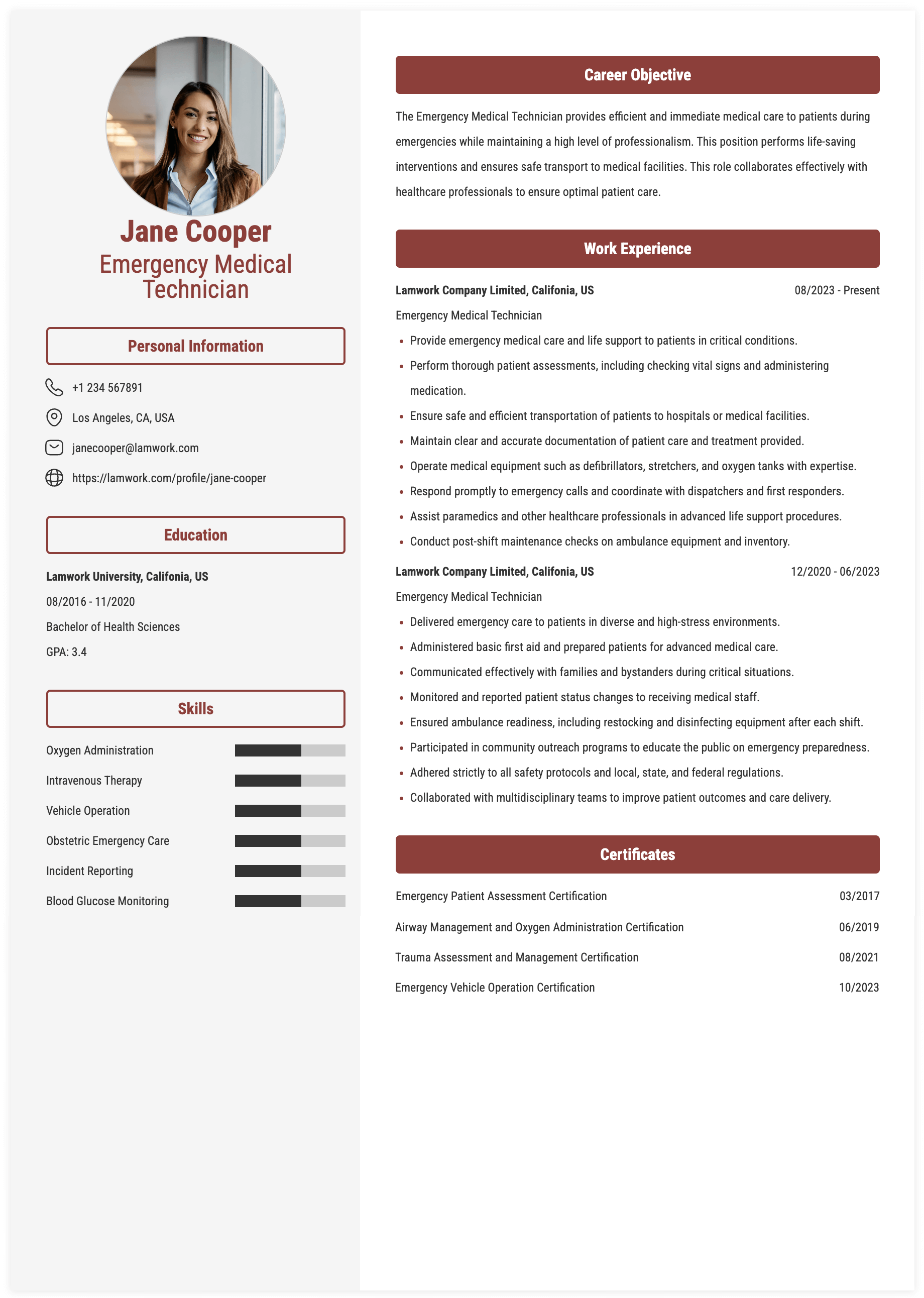 EMERGENCY MEDICAL TECHNICIAN RESUME EXAMPLE