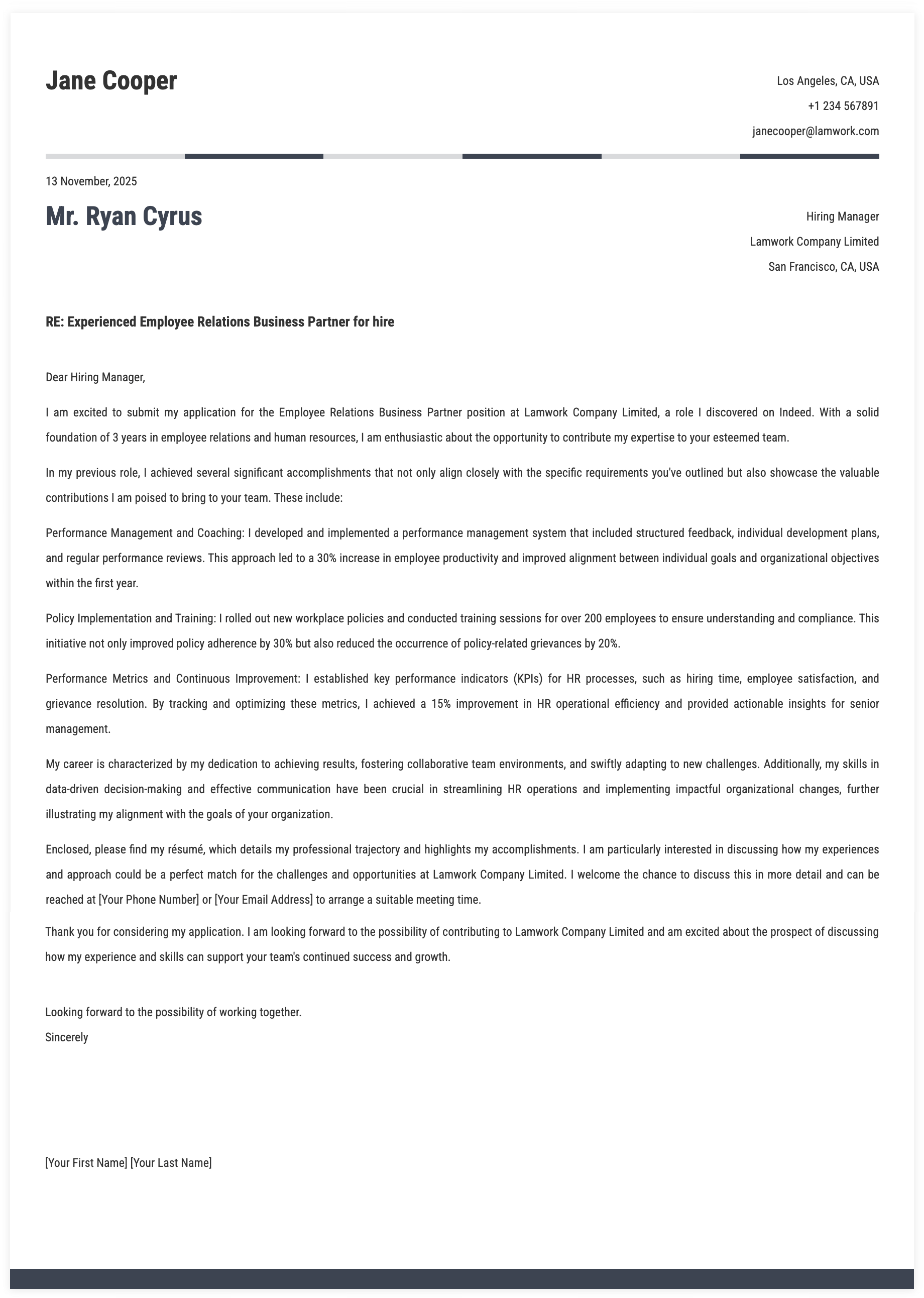 1. Details for Employee Relations Business Partner Cover Letter