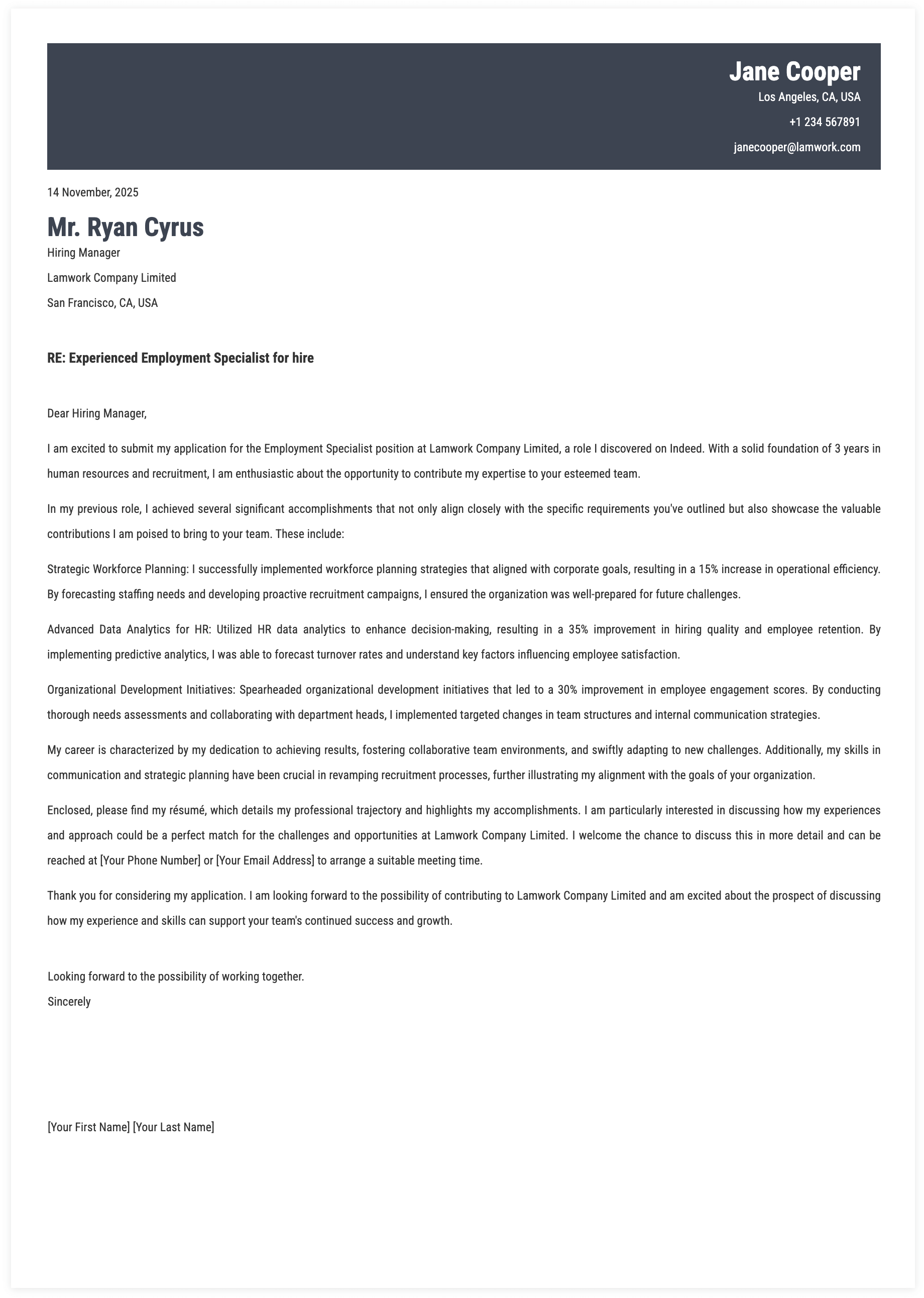 What Are the Qualifications and Requirements for Employment Specialist in a Cover Letter?