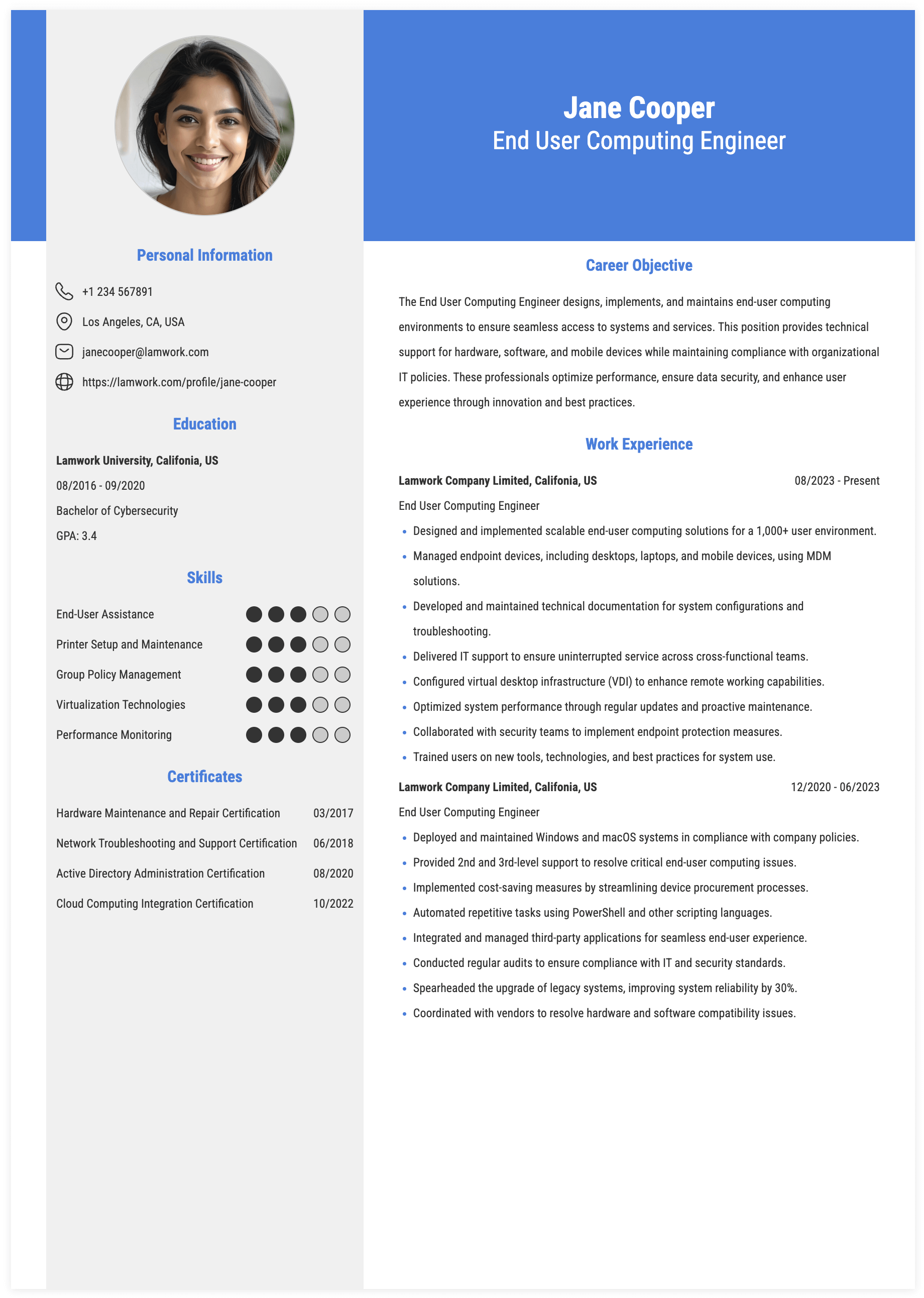 END USER COMPUTING ENGINEER RESUME EXAMPLE