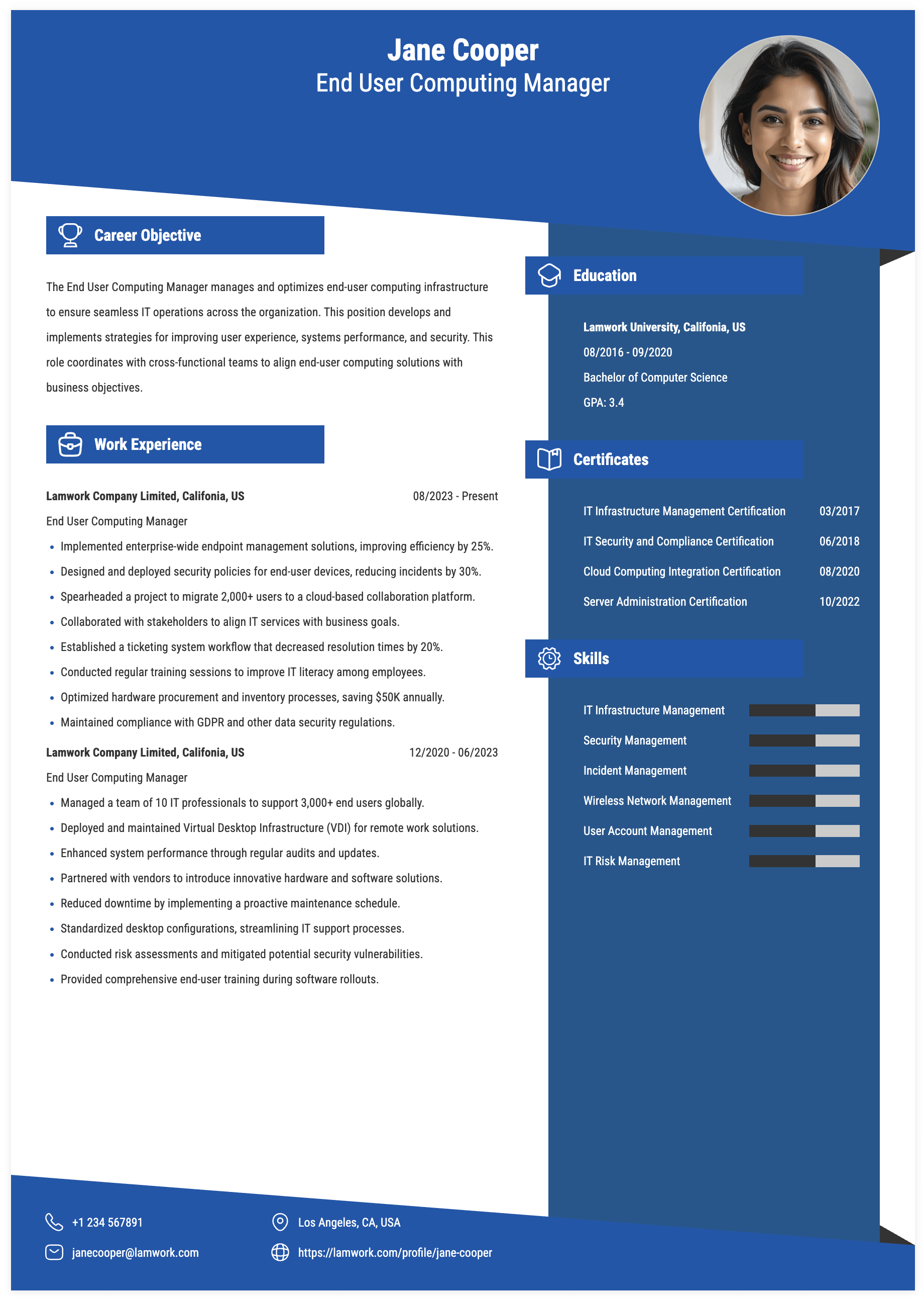 END USER COMPUTING MANAGER RESUME EXAMPLE