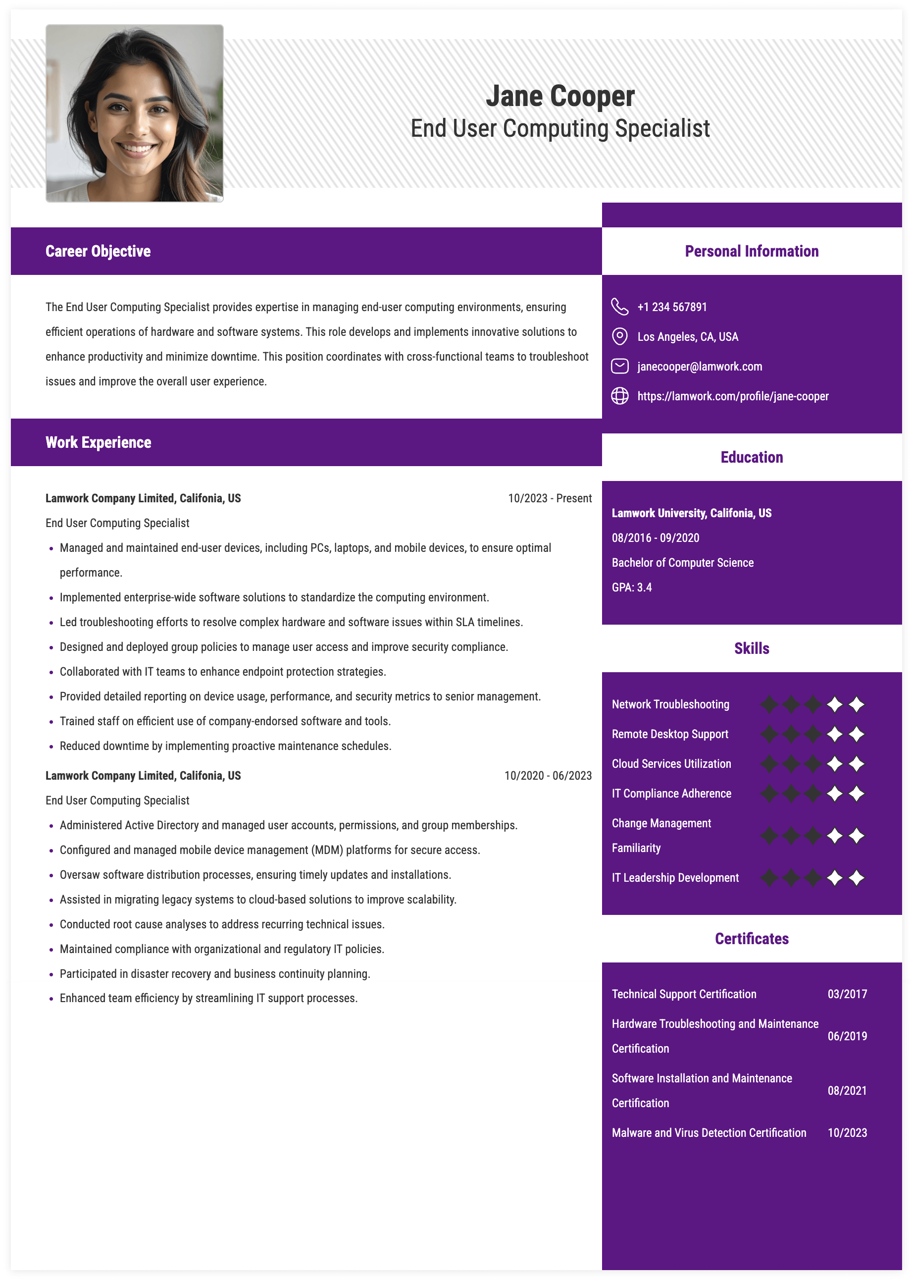 END USER COMPUTING SPECIALIST RESUME EXAMPLE