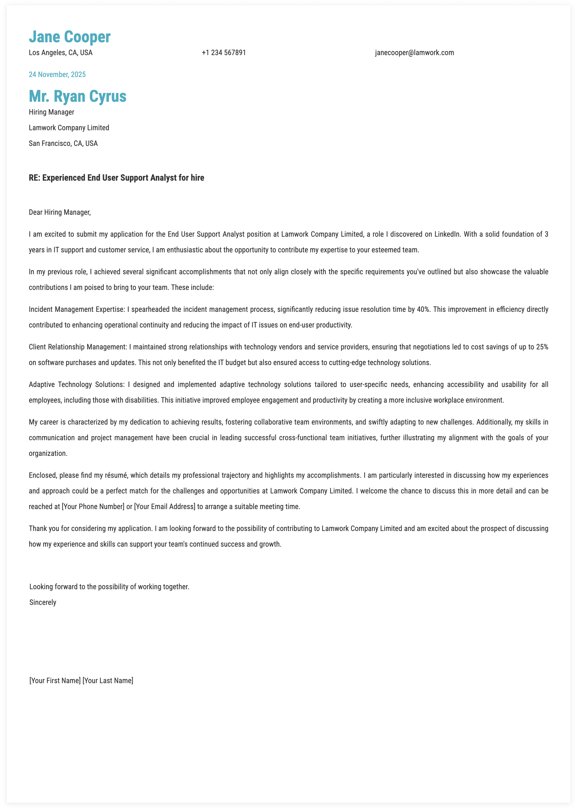 2. Experience and Requirements for End User Support Analyst Cover Letter
