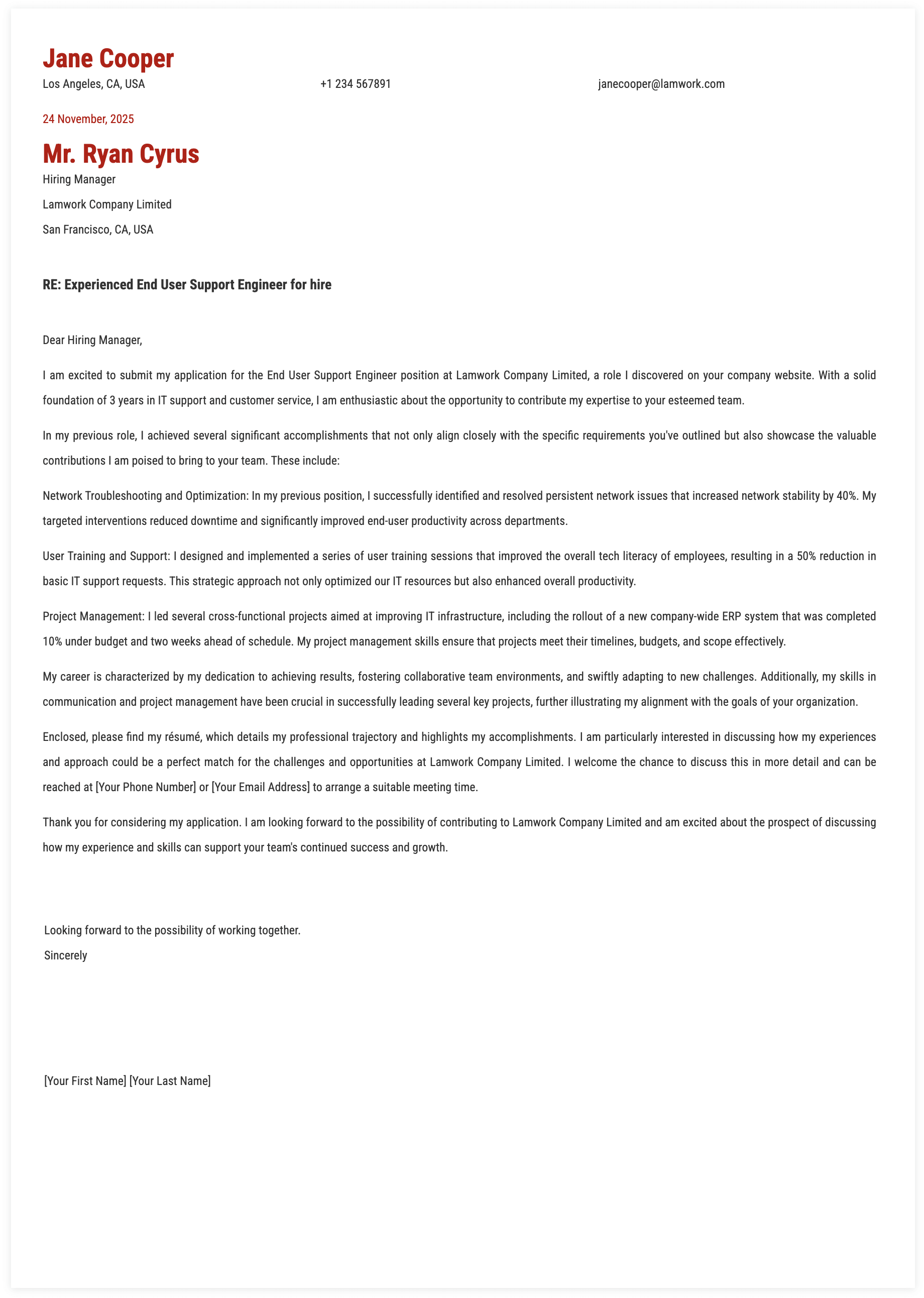 1. Details for End User Support Engineer Cover Letter