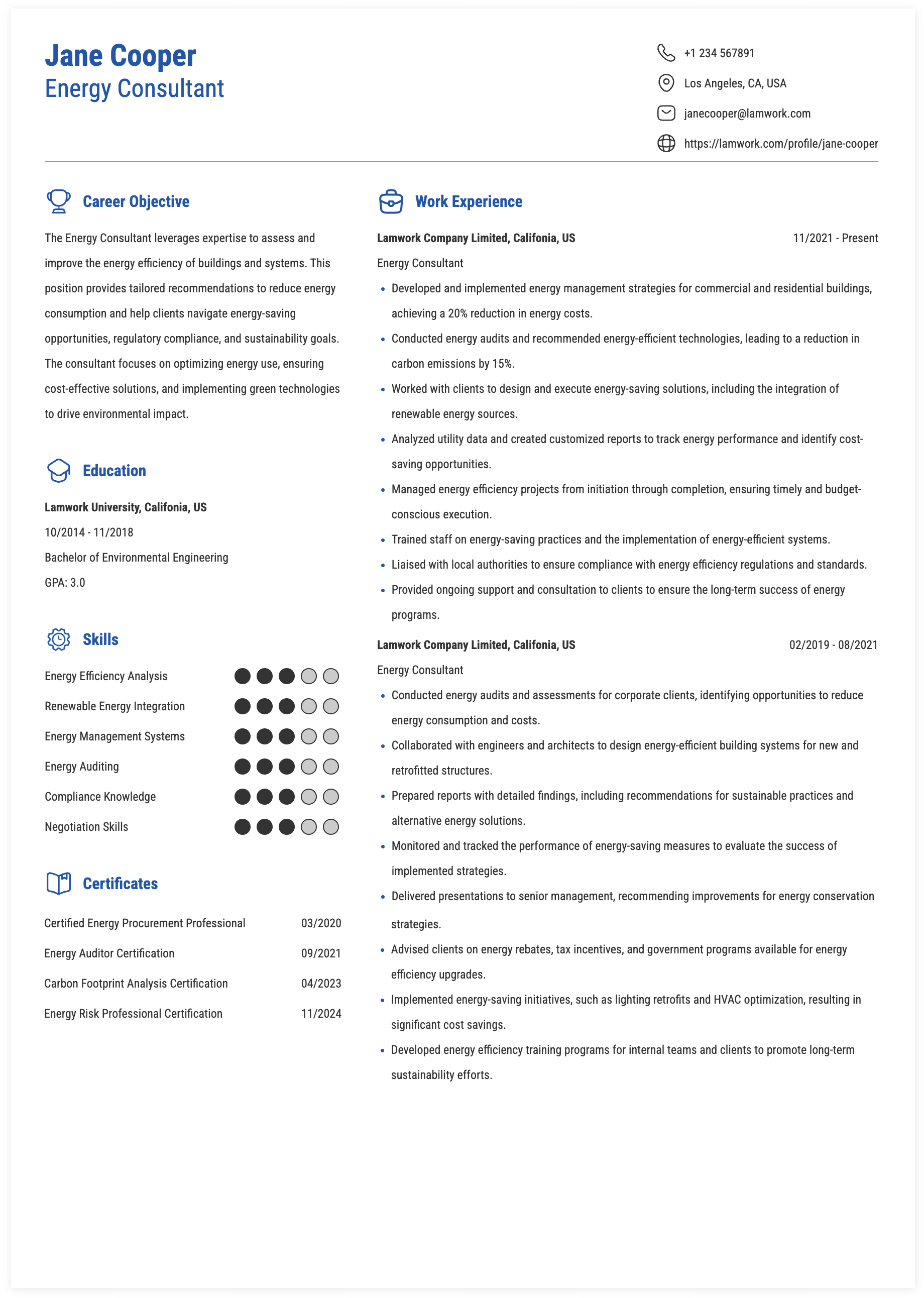 Tips for Energy Consultant Skills and Responsibilities on a Resume