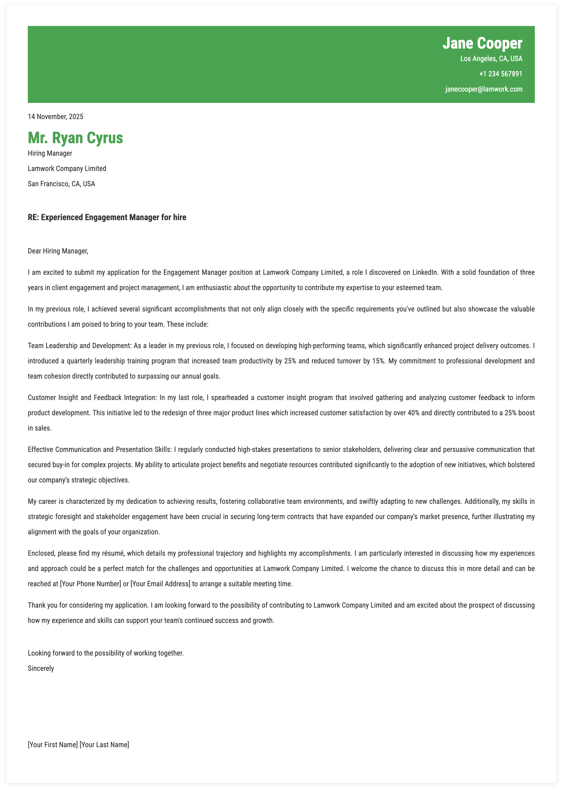 An Introduction to Professional Skills and Functions for Engagement Manager with a Cover Letter