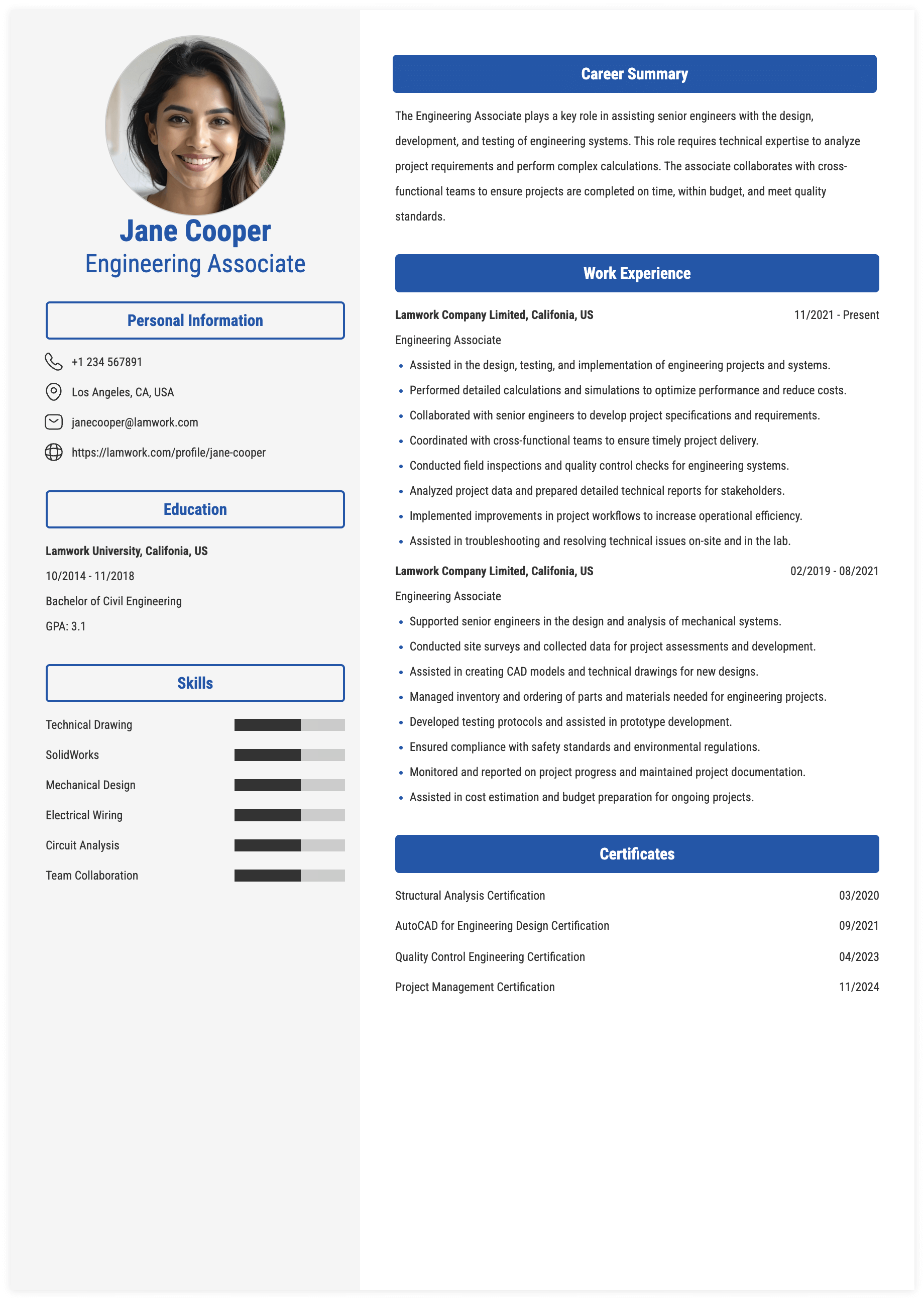 ENGINEERING ASSOCIATE RESUME EXAMPLE