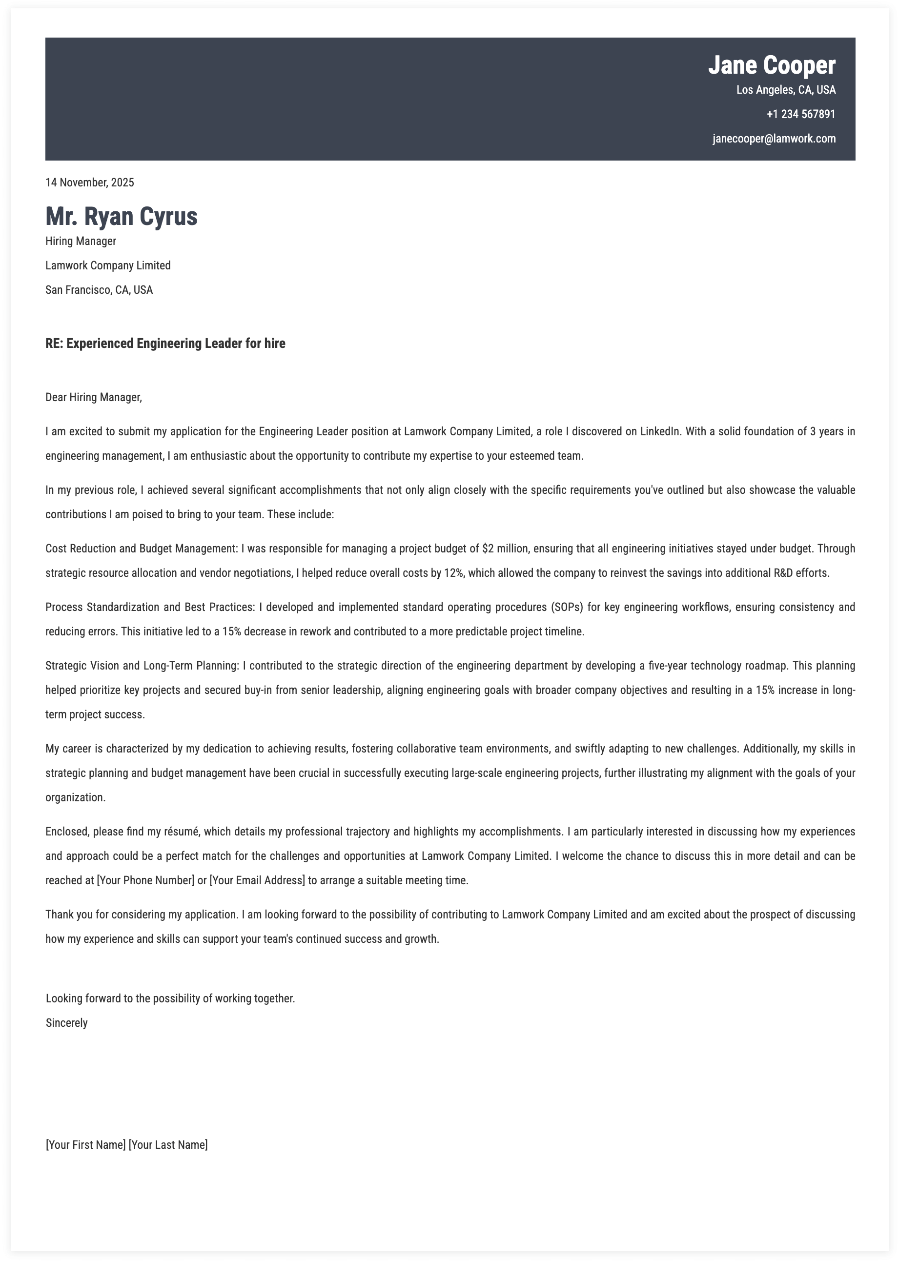 4. Requirements and Experience for Software Engineering Leader Cover Letter