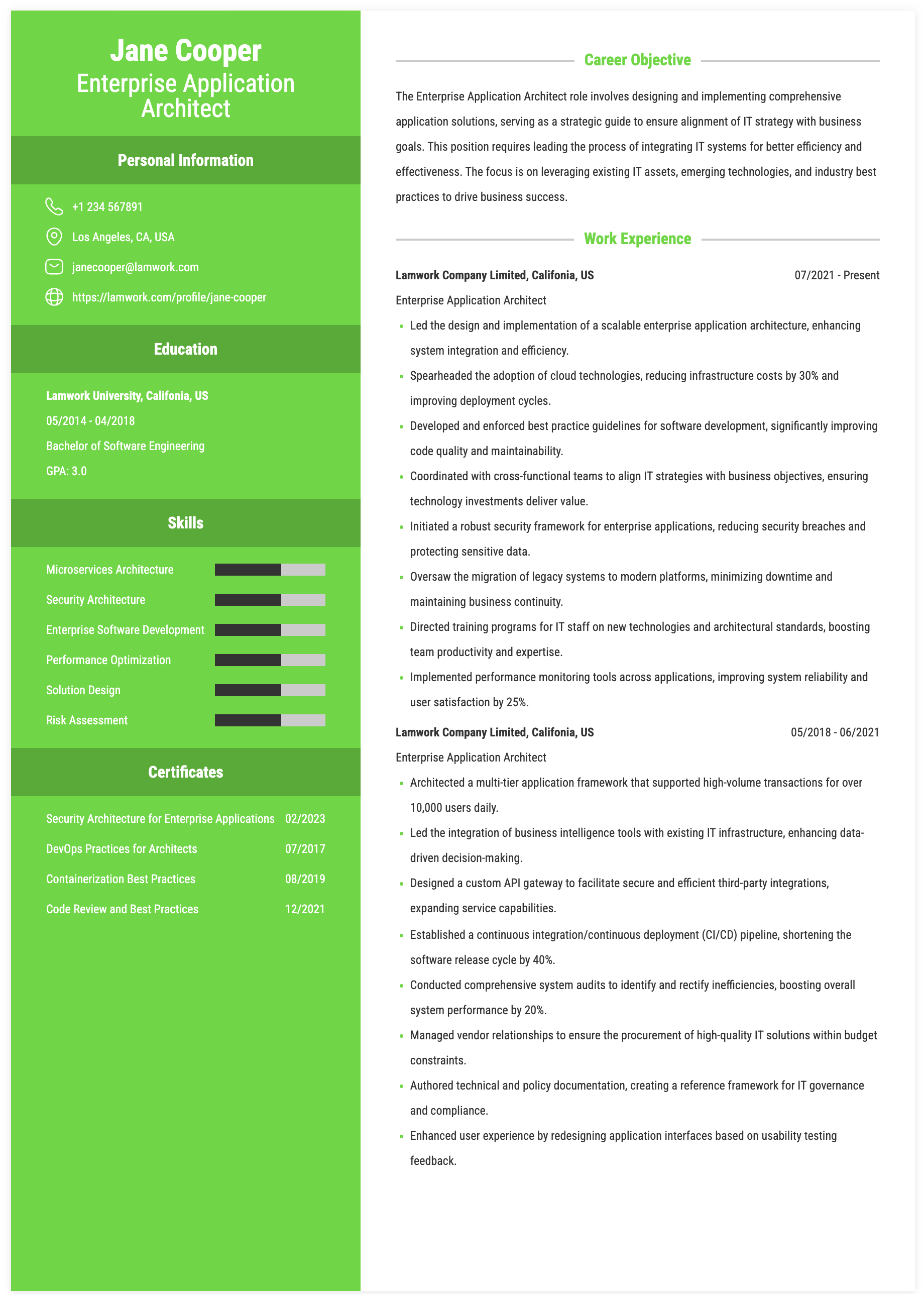 ENTERPRISE APPLICATION ARCHITECT RESUME EXAMPLE