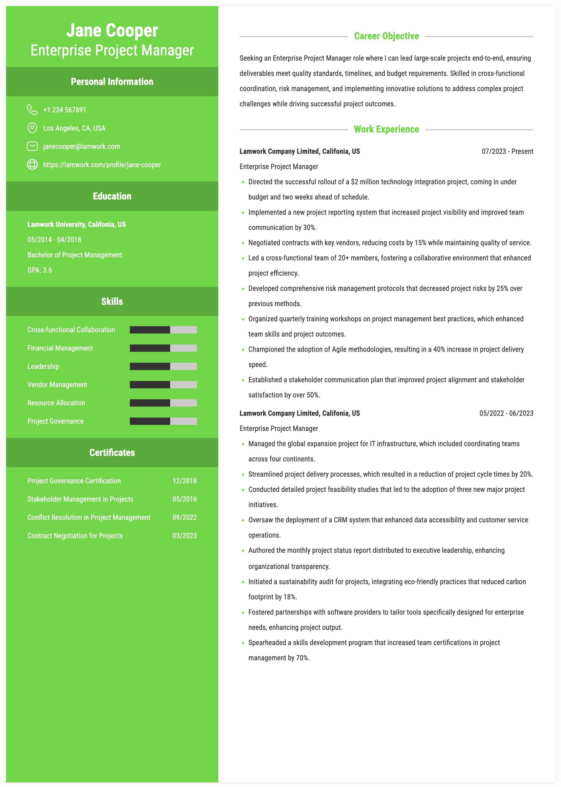ENTERPRISE PROJECT MANAGER RESUME EXAMPLE