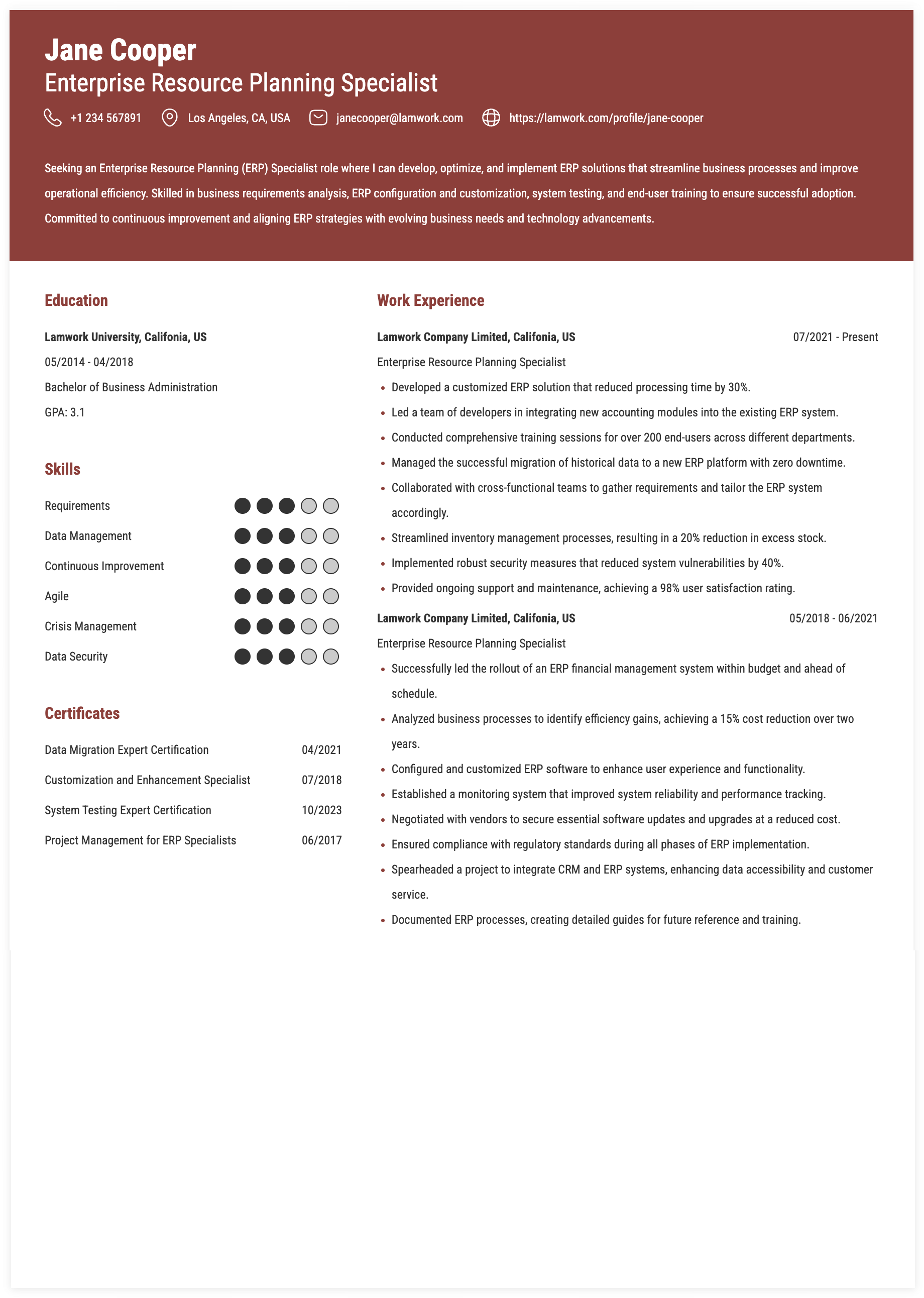 Tips for Enterprise Resource Planning Specialist Skills and Responsibilities on a Resume