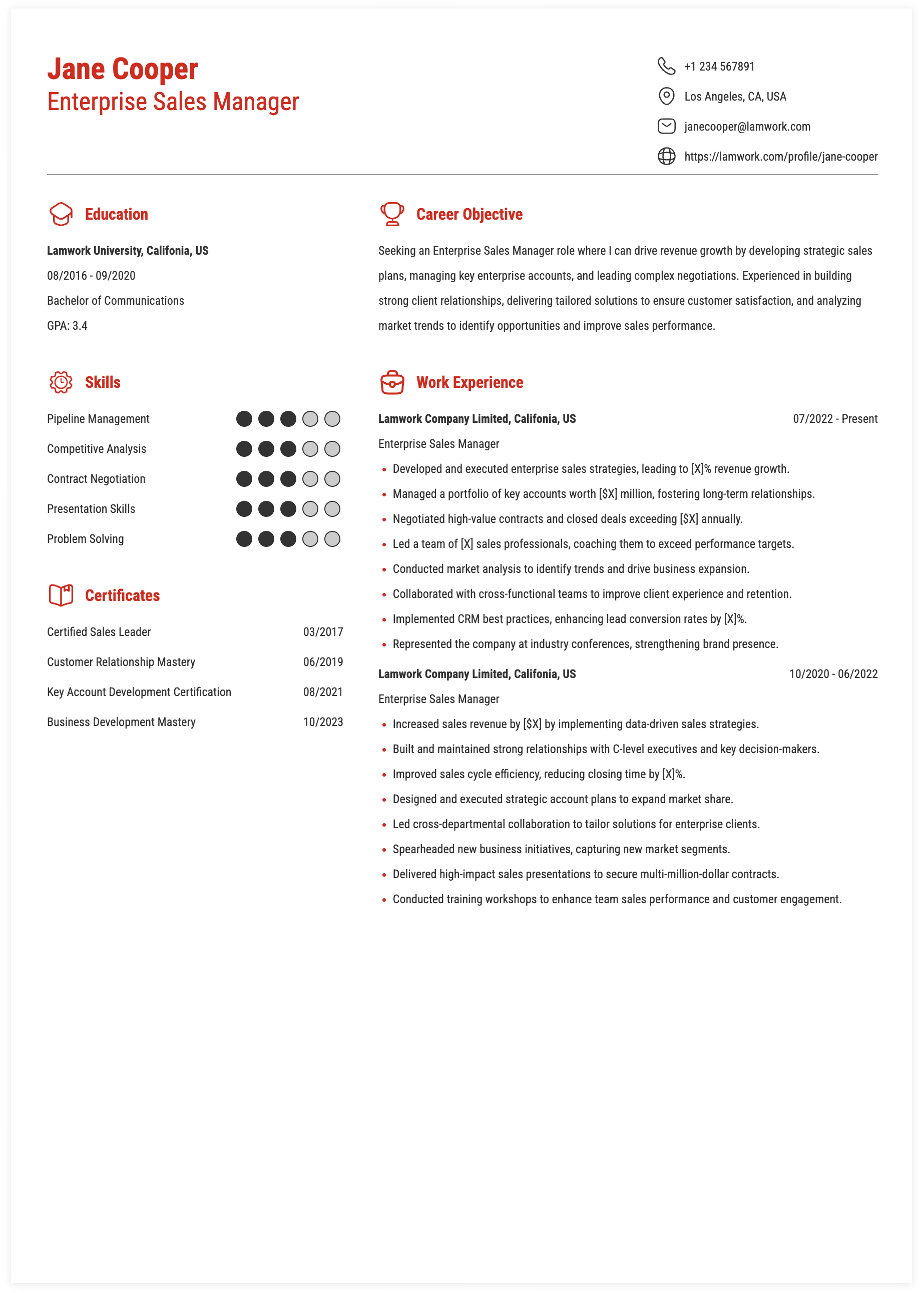 Tips for Enterprise Sales Manager Skills and Responsibilities on a Resume