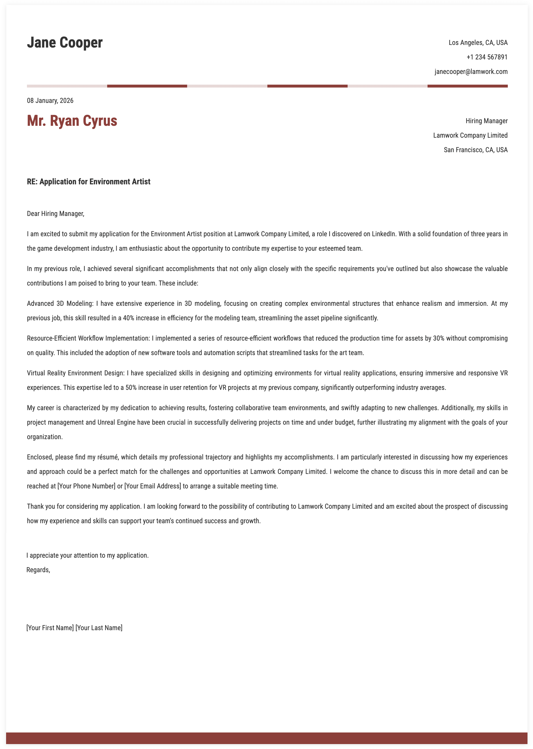 1. Details for Environment Artist Cover Letter