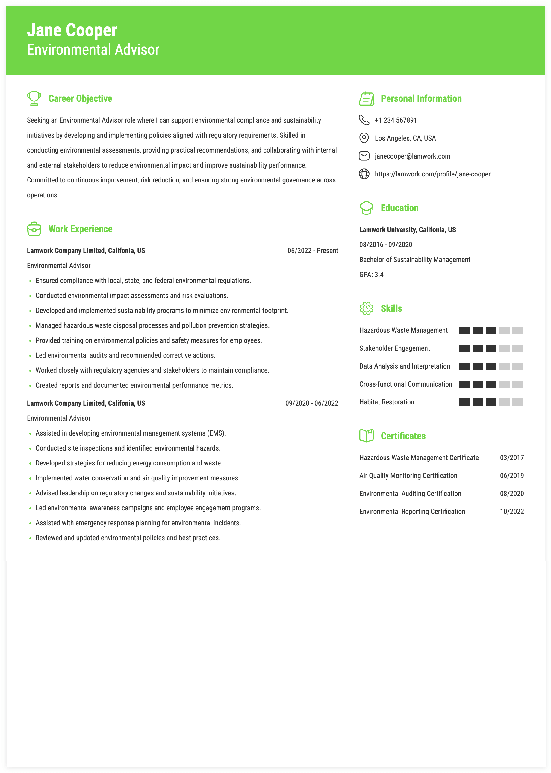 Tips for Environmental Advisor Skills and Responsibilities on a Resume