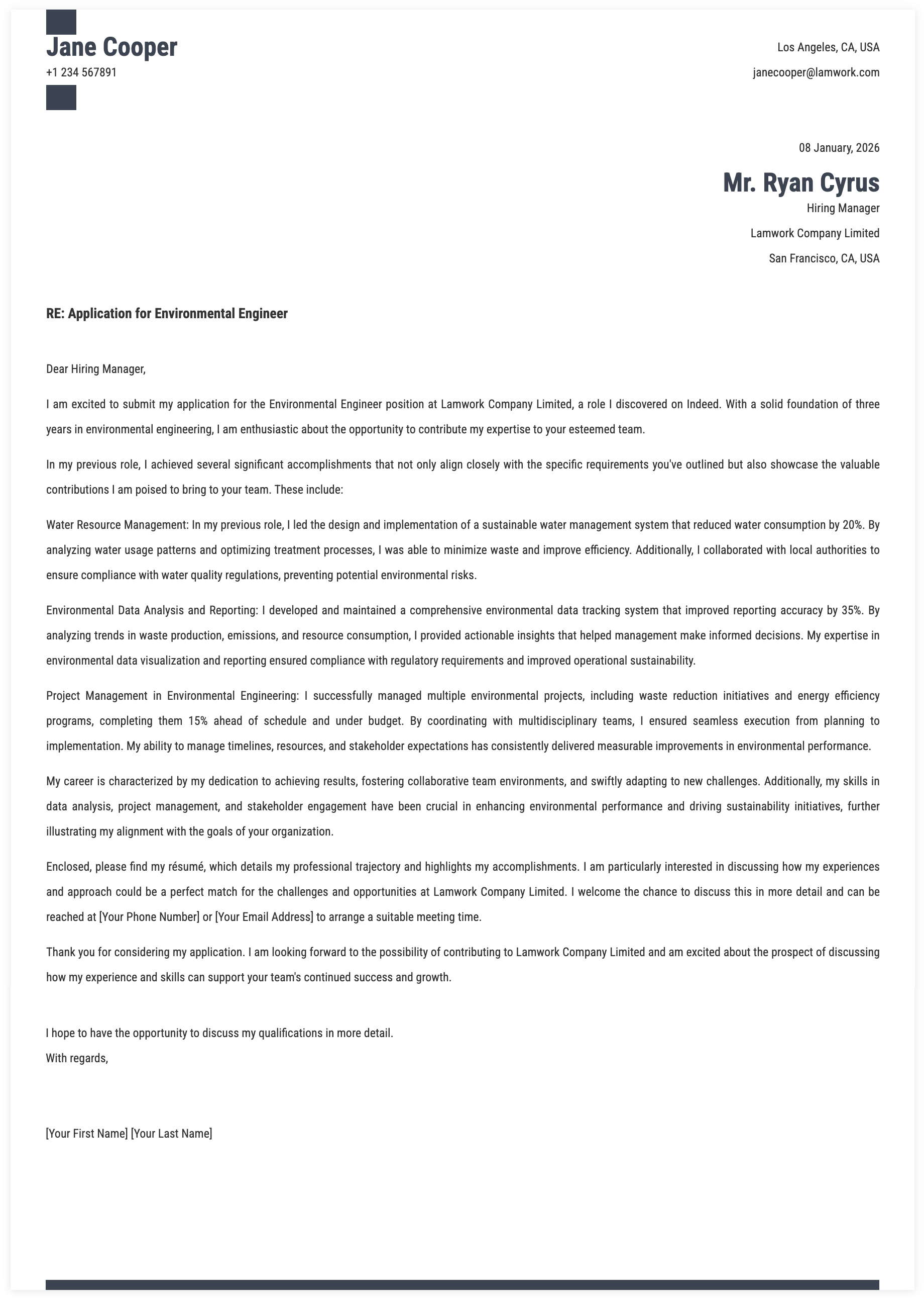 An Introduction to Professional Skills and Functions for Environmental Engineer with a Cover Letter