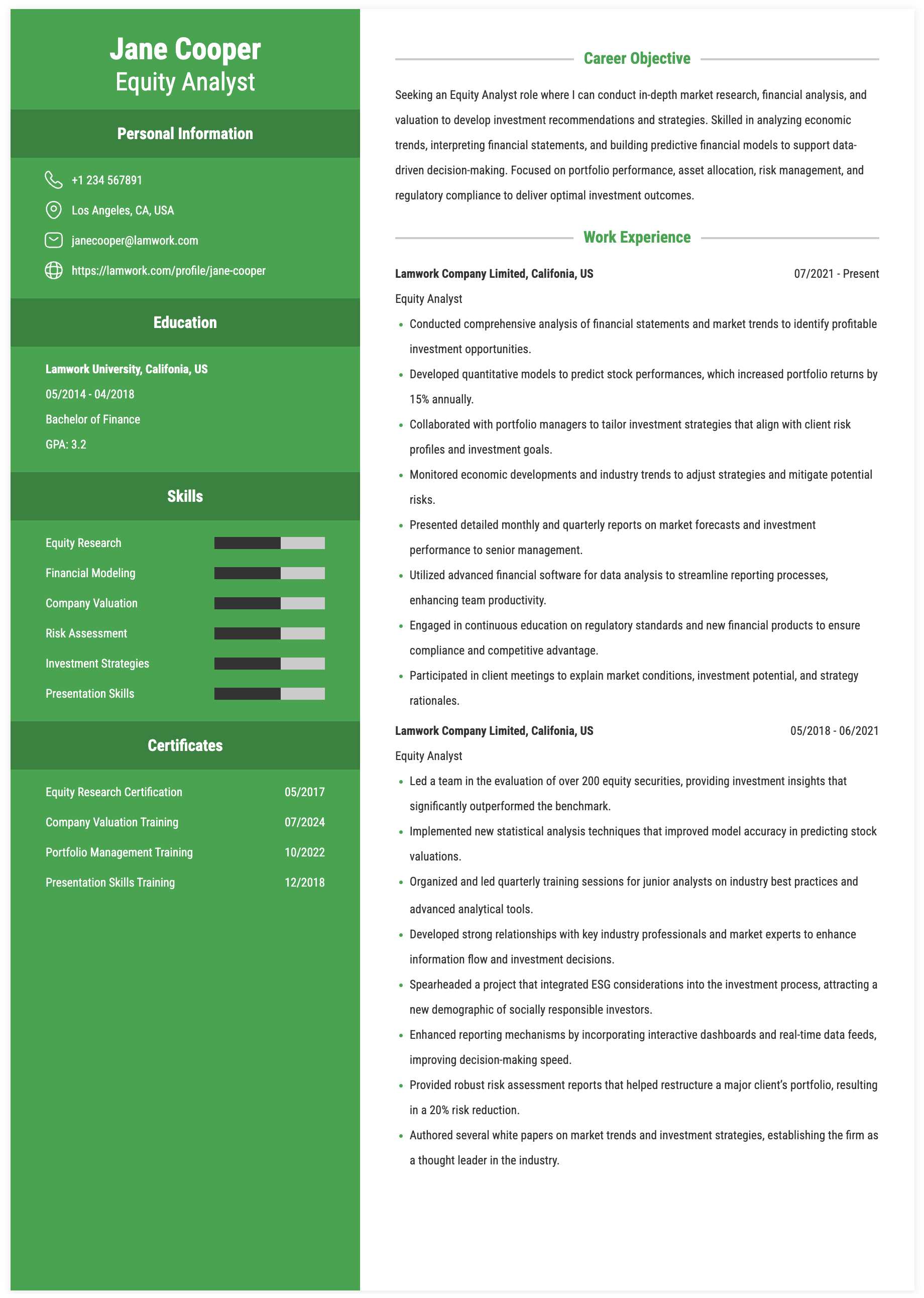 Tips for Equity Analyst Skills and Responsibilities on a Resume