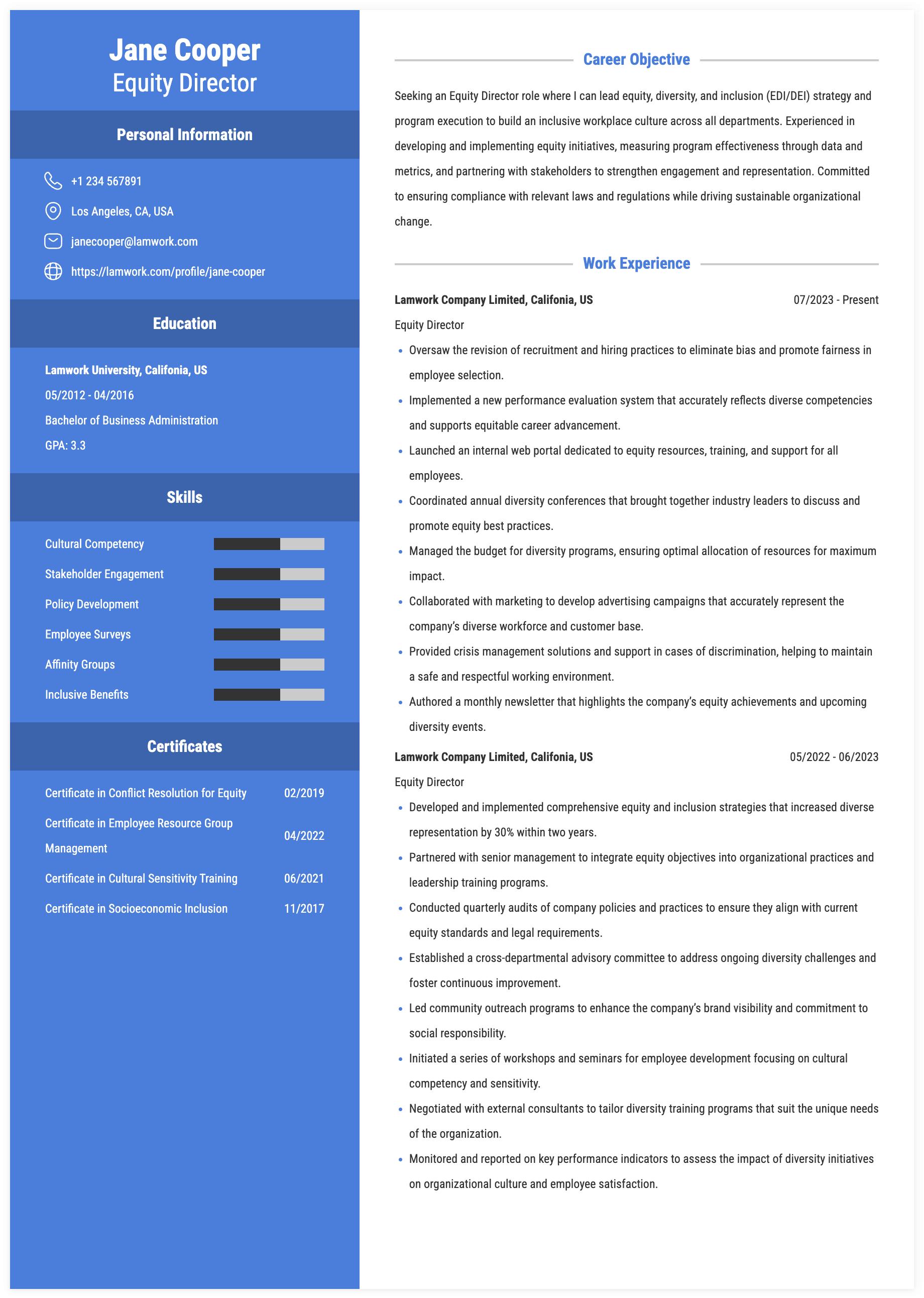 Tips for Equity Director Skills and Responsibilities on a Resume