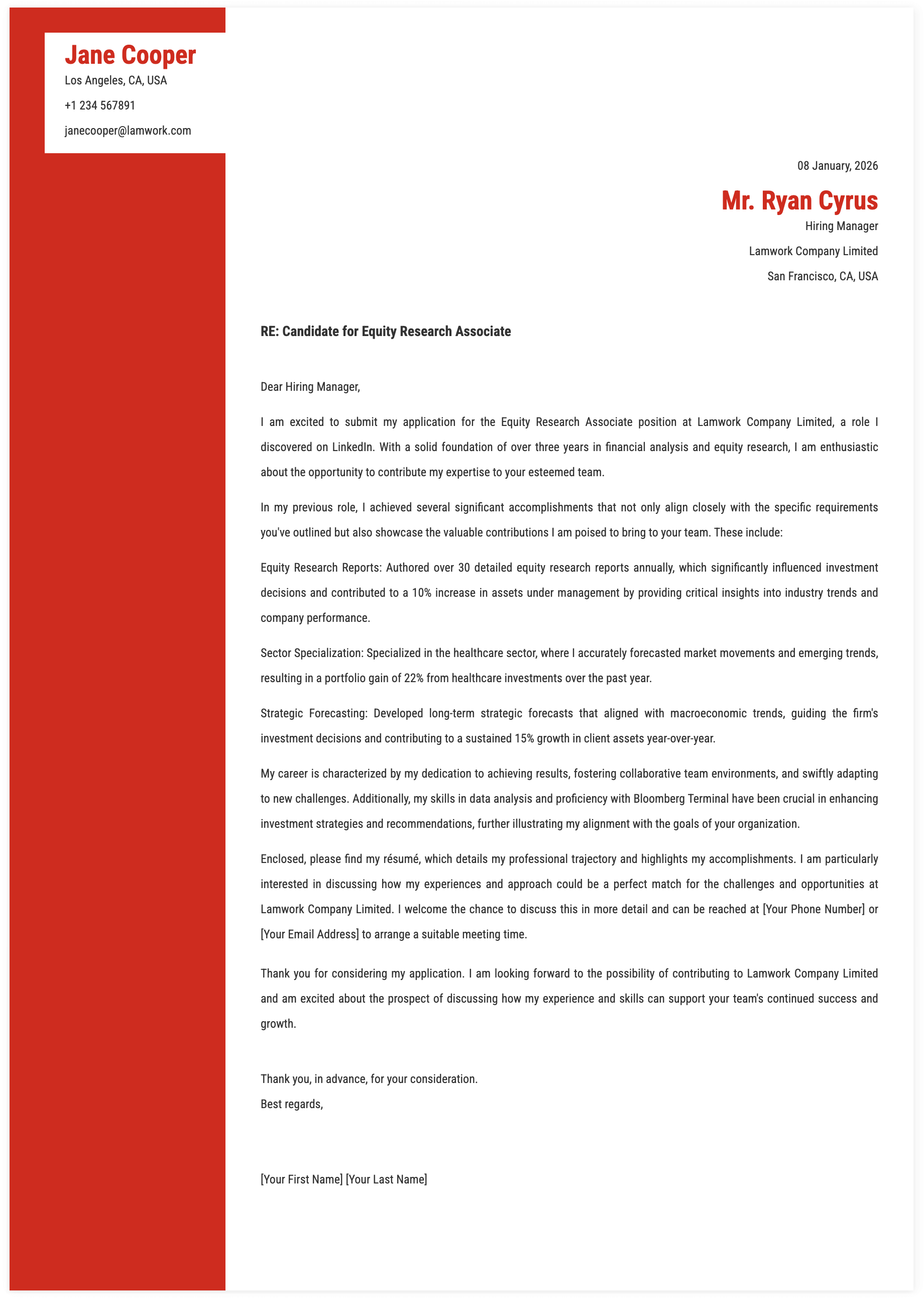 What Are the Qualifications and Requirements for Equity Research Associate in a Cover Letter?