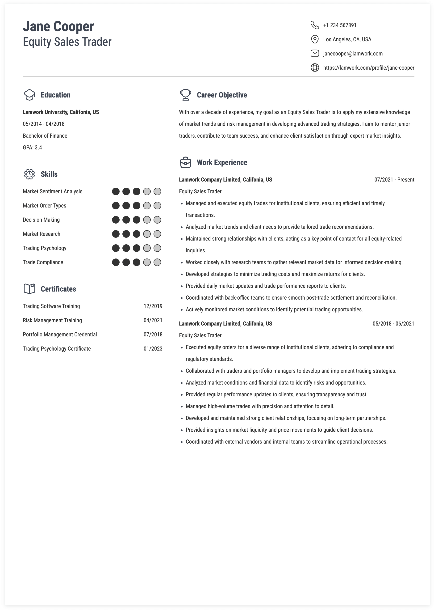 Tips for Equity Sales Trader Skills and Responsibilities on a Resume