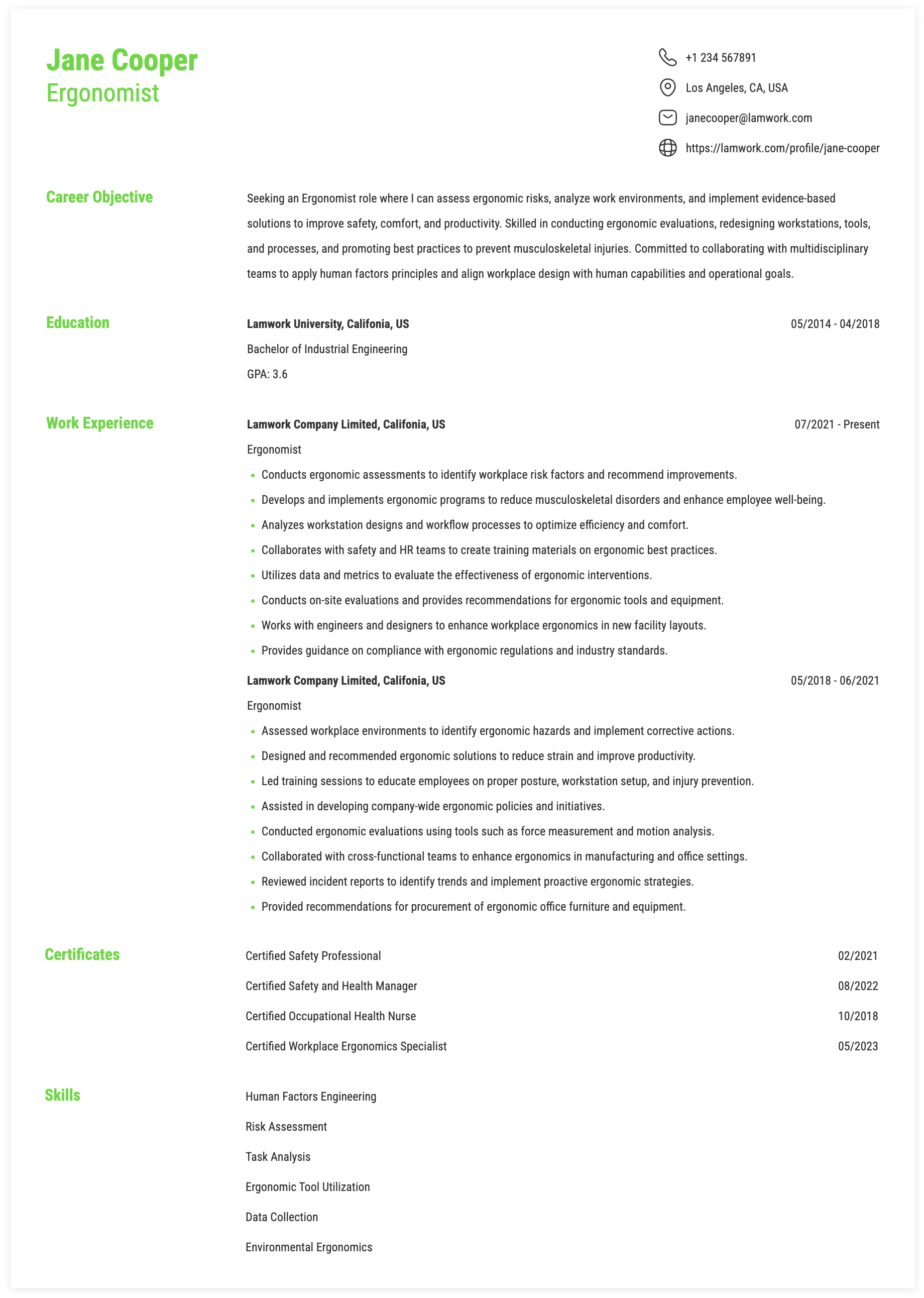 Tips for Ergonomist Skills and Responsibilities on a Resume