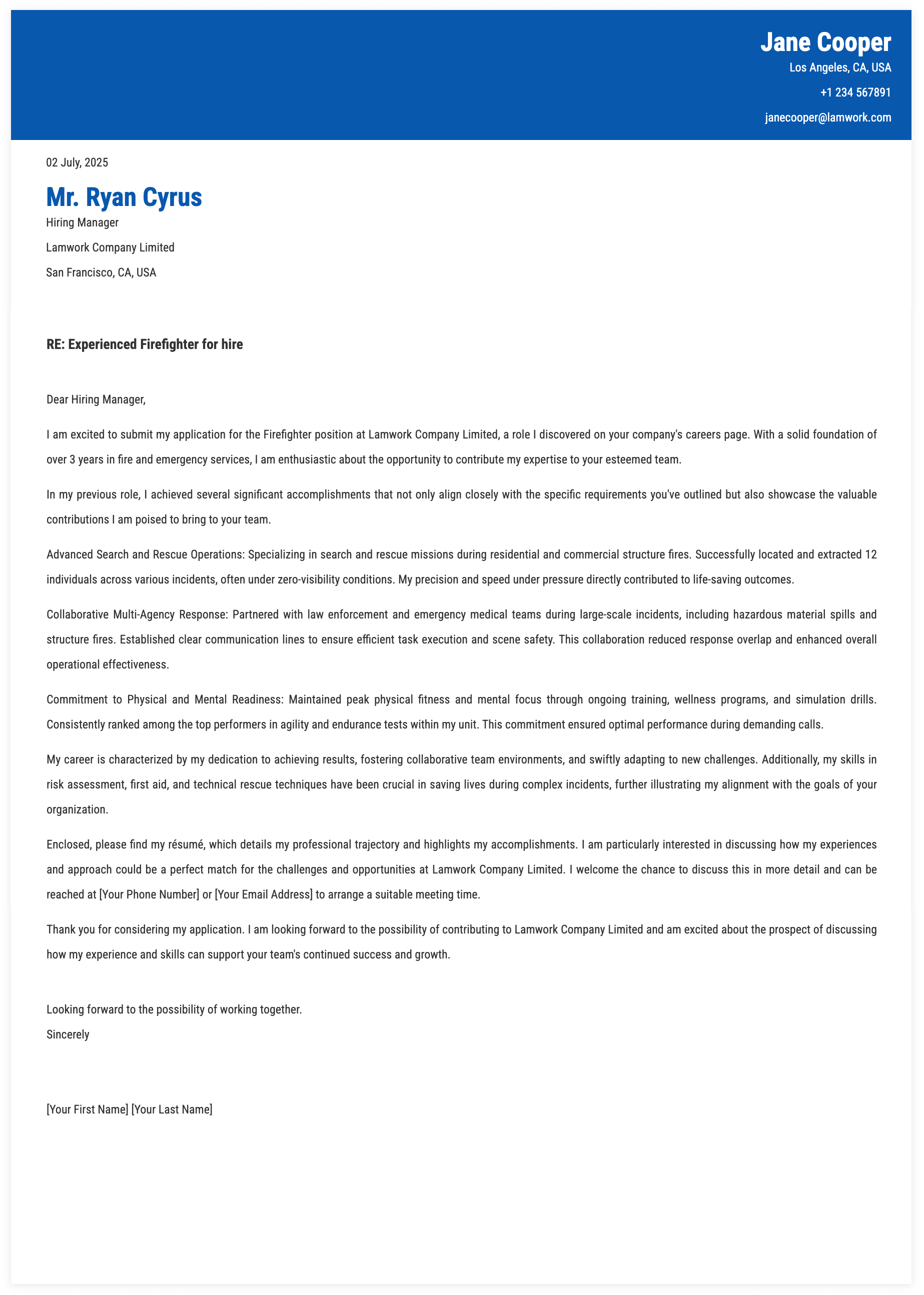 What Are the Qualifications and Requirements for Firefighter in a Cover Letter?