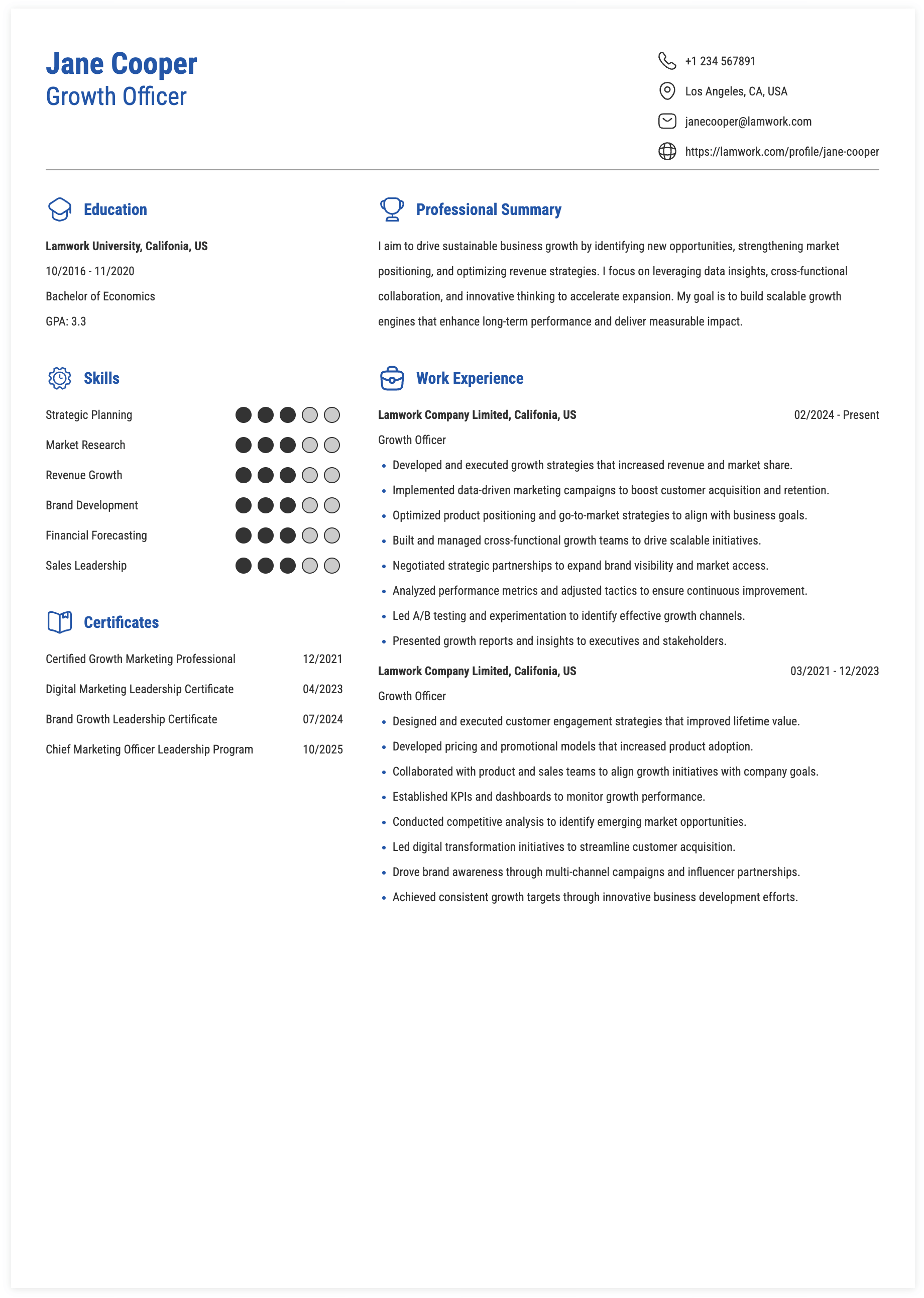 Tips for Growth Officer Skills and Responsibilities on a Resume