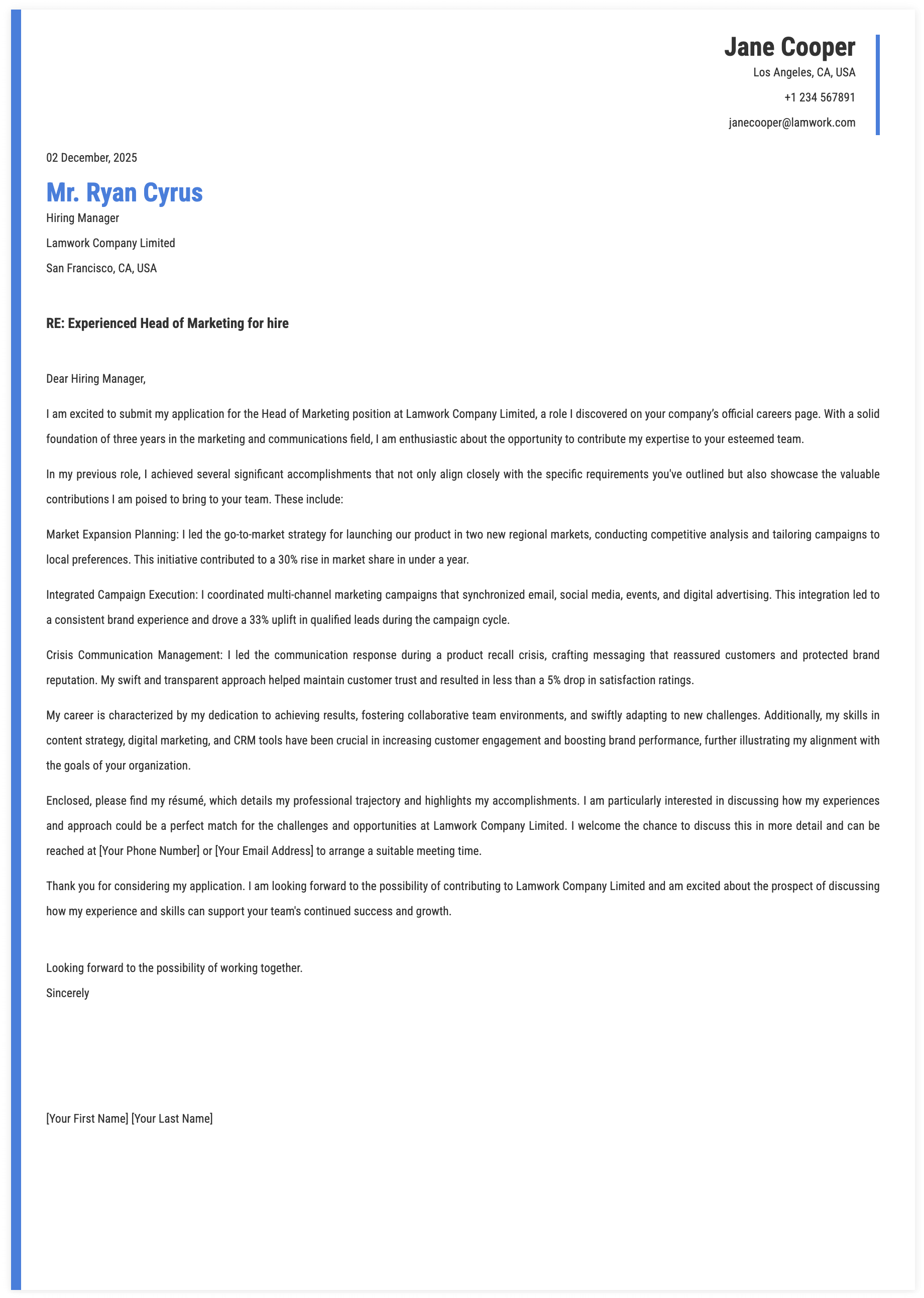 7. Key Performance Indicators (KPIs) for Head of Marketing Cover Letter