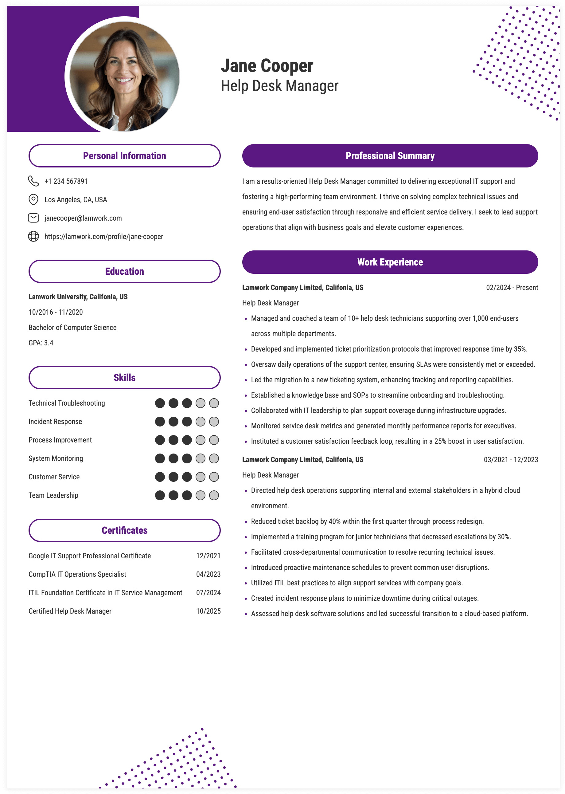 4. Help Desk Manager, Innovatech Services, Seattle, WA