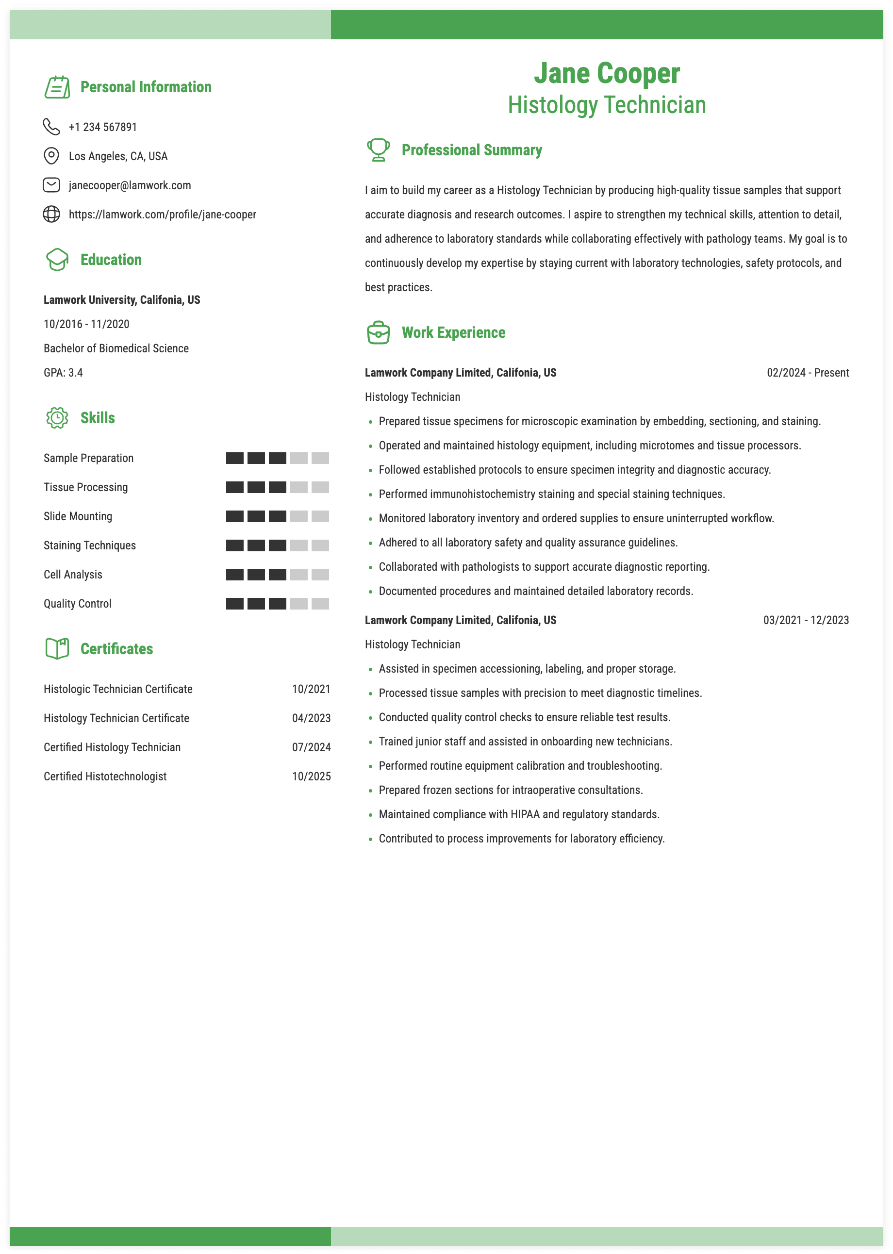 Tips for Histology Technician Skills and Responsibilities on a Resume