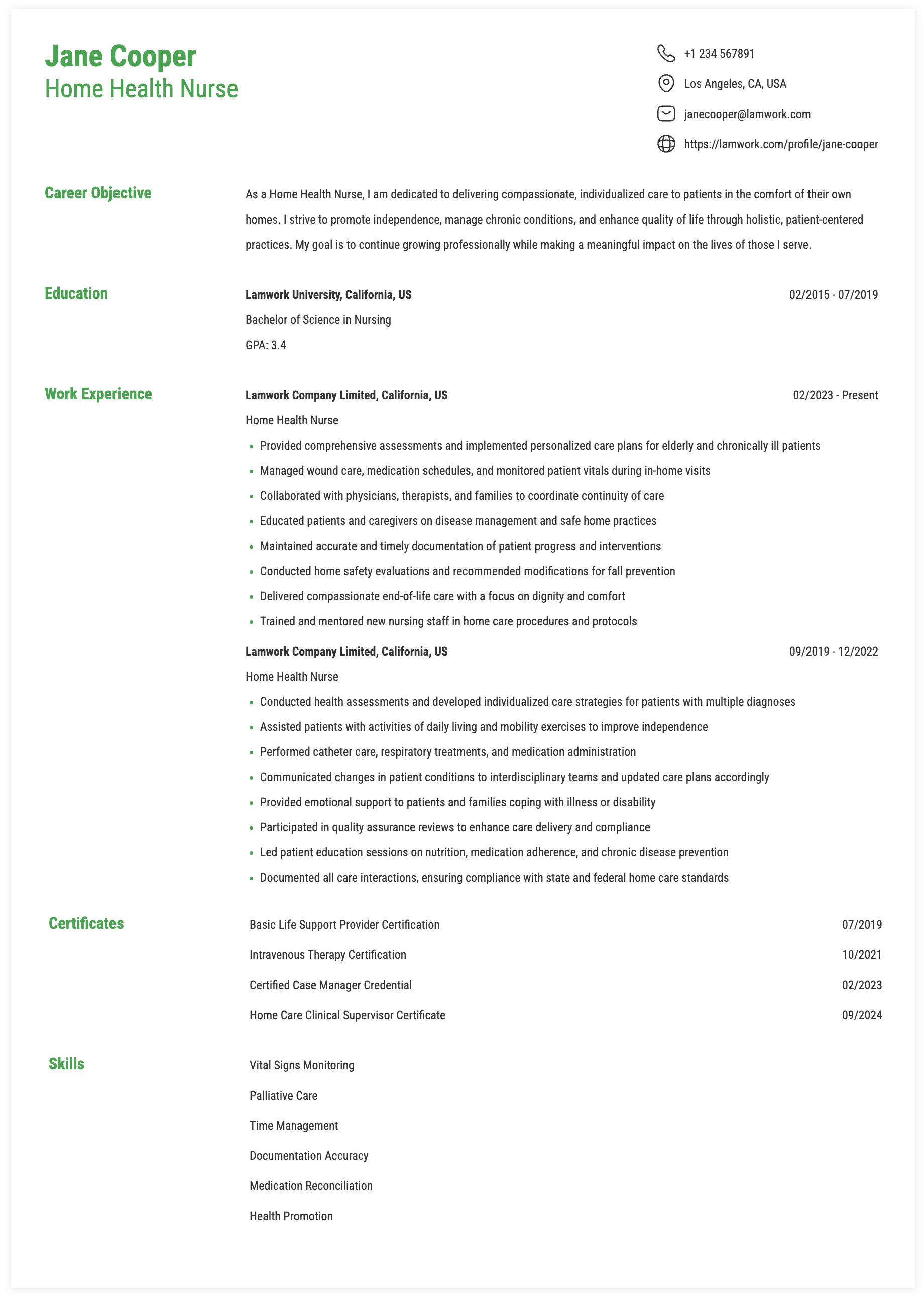 - Provide education to patients and families on proper home health care procedures and strategies.