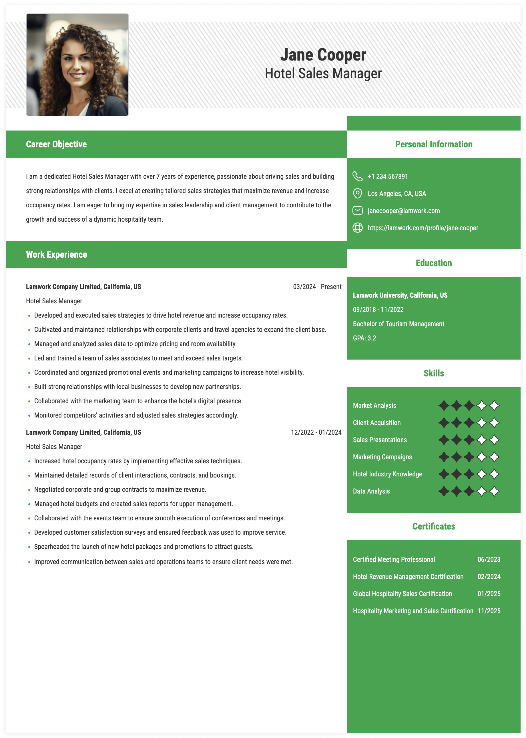 4. Hotel Sales Manager, Evergreen Hospitality Partners, Eugene, OR