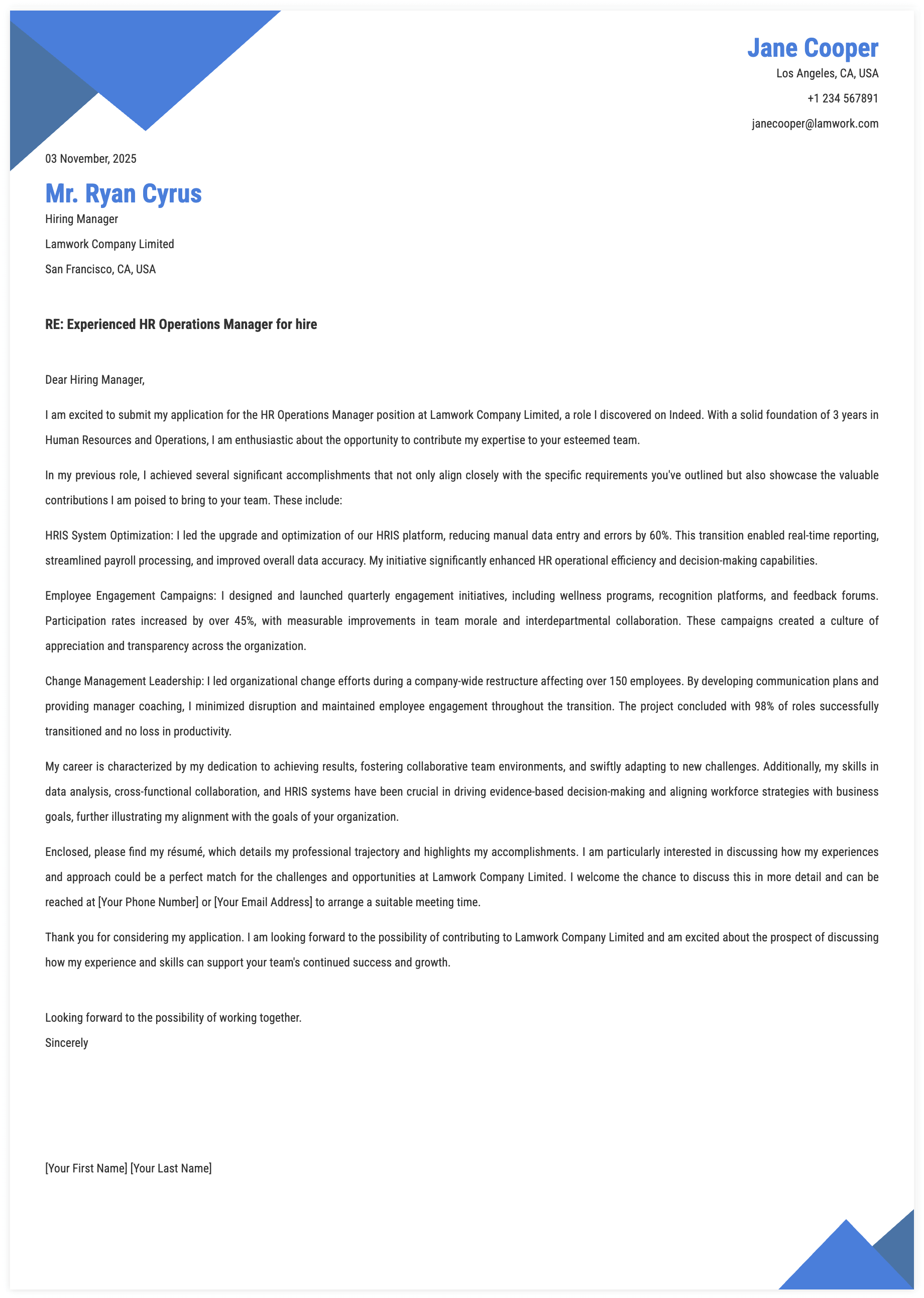 An Introduction to Professional Skills and Functions for HR Operations Manager with a Cover Letter