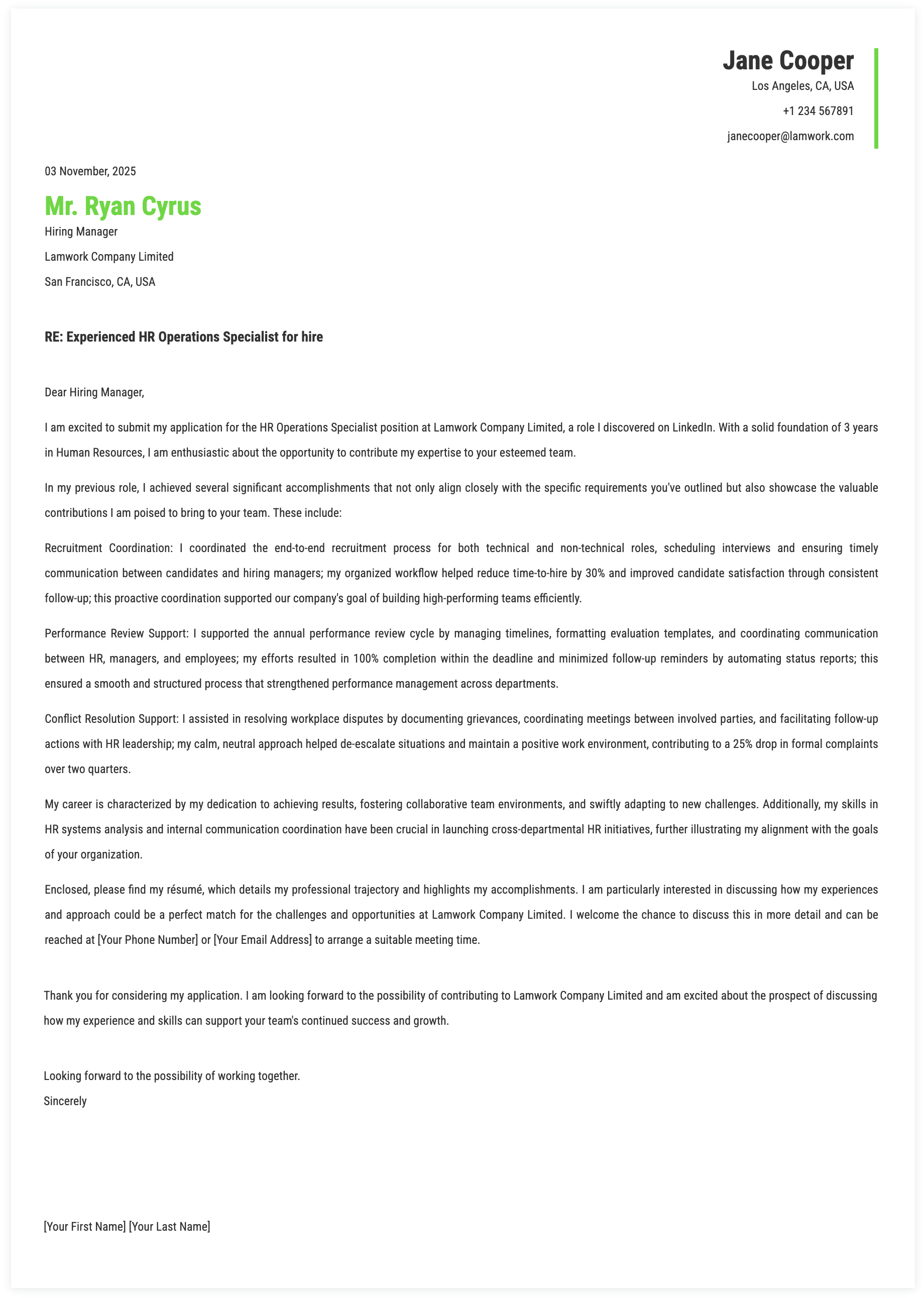 8. Key Deliverables for HR Operations Specialist Cover Letter
